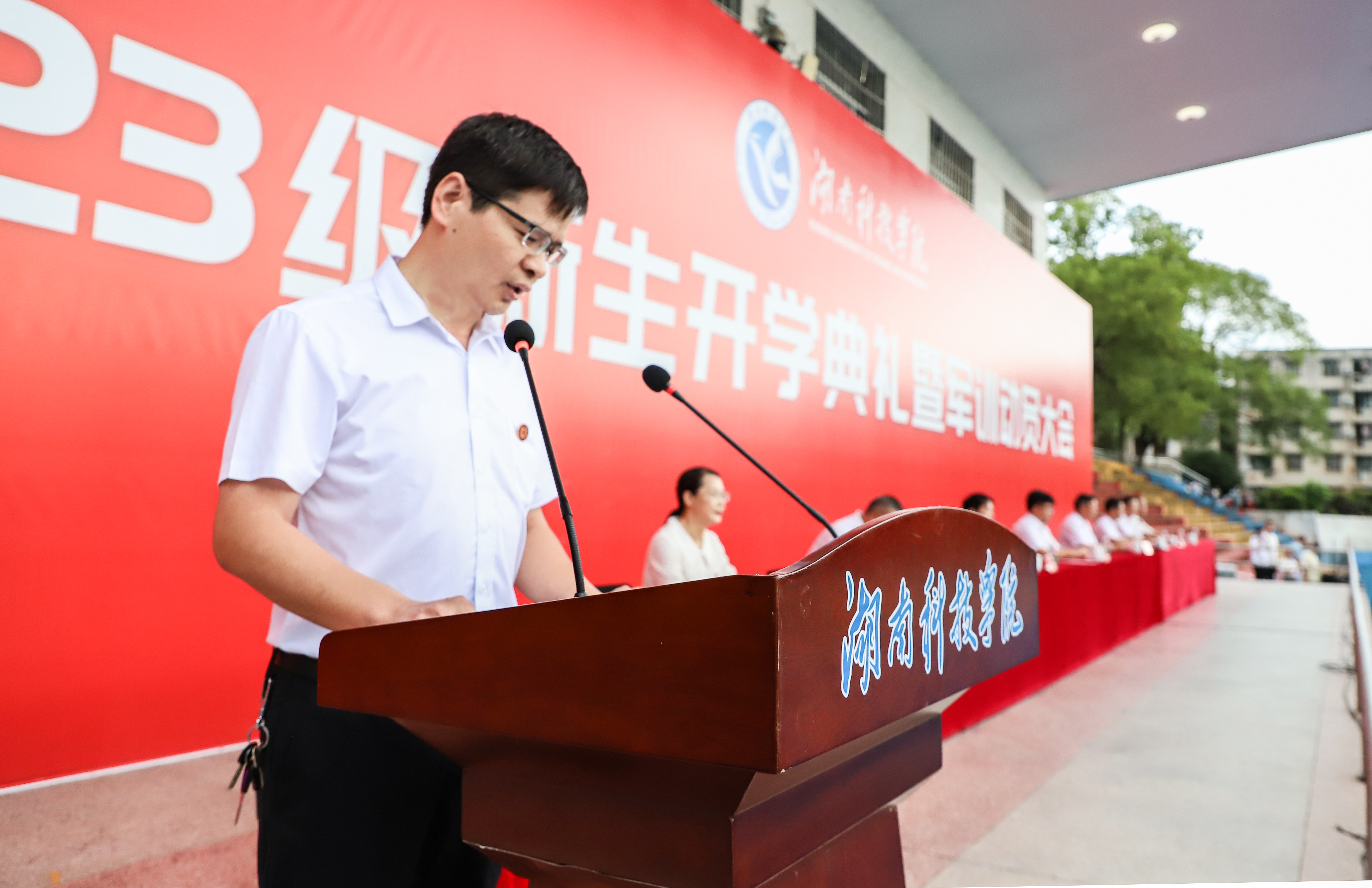 教师代表、湖南省高校青年骨干教师、文法学院党总支书记张能泉与2023级新生分享了三个关键词,育人使命、责任担当和良师益友,他寄语新生们,要怀揣理想,脚踏实地,用勤奋、汗水、智慧和激情向未来进发,朝梦想前行。