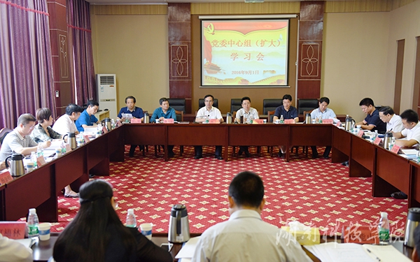 本网讯 9月1日,党委中心组(扩大)在行政办公楼八楼三会议室专题学习了习近平总书记在庆祝中国共产党成立95周年纪念大会上的讲话、省委组织部副部长胡奇在2016年全省普通高校领导干部暑期研讨班上的讲话、《中国共产党问责条例》、《湖南省普通高等学校党委领导下的校长负责制实施办法》和《九州在线网站章程》等讲话和文件精神。校党委书记陈弘主持并讲话。