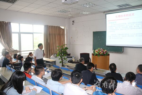 本网讯(通讯员 邓平洋) 5月24日下午,中南林业科技大学博士生导师章怀云教授应邀来校讲学,在逸夫楼424教室为化学与生物工程学院师生作《生物技术产业与生物安全》的学术报告。