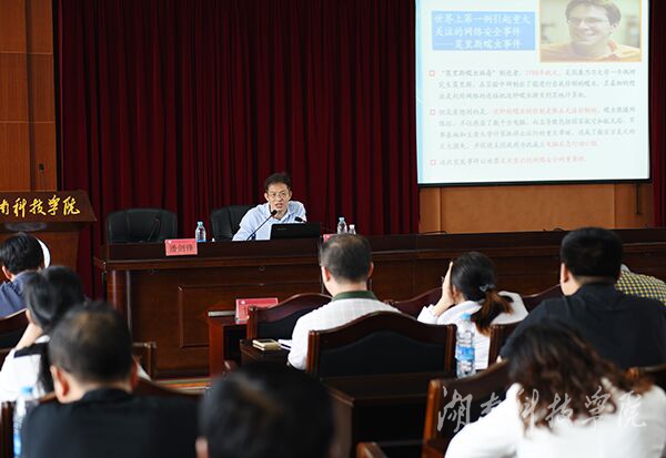 本网讯 (记者 欧盼迪 摄影 何帅文)5月14日上午,湖南商学院党委书记唐亚阳为处干班全体学员作题为“当前网络安全形势”的专题讲座。