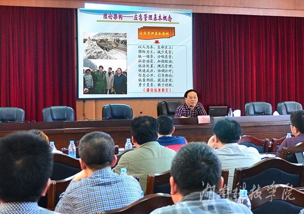 本网讯(实习记者 代天 摄影 吕世科)4月16日下午,湖南省政府办公厅秘书四处处长宁资利以《突发事件的应急管理》为题给处干班授课。