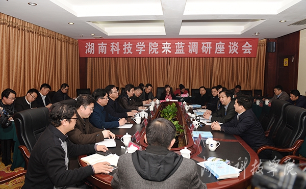 座谈会上,秦志军代表县方介绍了蓝山县情和经济社会发展情况,曾宝成代表校方介绍了学校基本情况和转型发展情况。双方参会人员分为五个小组,分别就旅游文化、教育、工业、商贸、农业五个领域近20余项合作项目的可行性进行了对口研讨。蓝山县相关部门负责人还针对各自经济社会发展实践中遇到的困难和问题提出了合作意向。经过双方交流、研讨,达成初步合作意向项目50多个。专家组回校后还将进一步汇总、筛选、论证,然后逐个落实。
