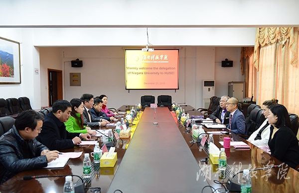 宋宏福对Dr. Hung Le副校长一行的到来表示热烈欢迎,他就我校发展历史、办学特色、发展国际交流与合作的领域等进行了详细介绍。Dr. Hung Le副校长重点介绍了美国尼亚加拉大学的地理位置、办学历史、办学特色。