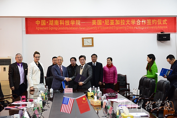 本网讯 12月19日至22日,美国尼亚加拉大学副校长Dr. Hung Le、李天宝教授、Kimberly主任一行来访,副校长宋宏福热情迎接。双方就加强两校在学术科研合作、教师海外研修等方面的合作展开洽谈,并签订教育领域合作意向书。