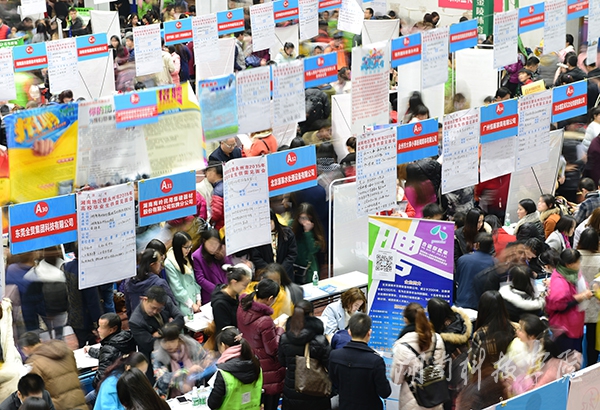本网讯(记者 刘忠奇 实习记者 杨光月 张云芳)12月12日,湘南地区暨永州市2015年高校毕业生供需见面会在校体育馆隆重举行。8000人次前往招聘现场,认真在前来的262家单位里“找婆家”,近1200名毕业生与用人单位初步达成就业意向。