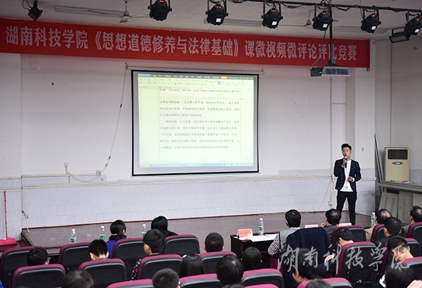 本网讯(记者 裴滢 实习记者 陈林 摄影 何帅文)为深入推动思想政治理论课教学改革,充分发挥思想政治理论课在社会主义核心价值观教育中的主渠道、主阵地作用,增强大学生对社会主义核心价值观的认同,11月23日晚,由马克思主义学院主办的《思想政治教育与法律基础》课微视频微评论大赛在我校博雅楼东三教室举行。