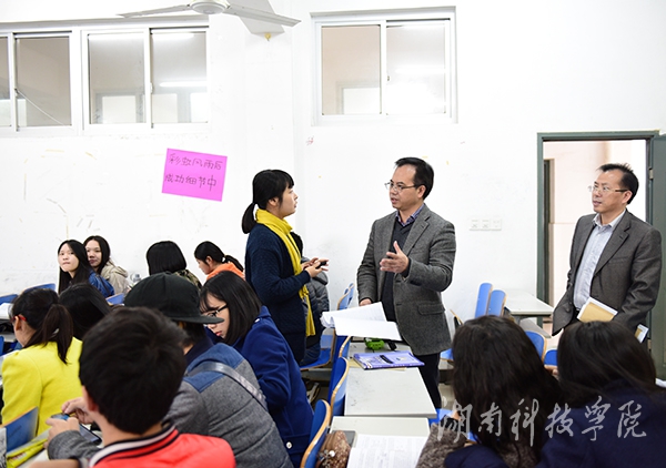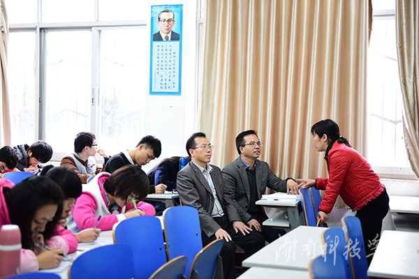 陈弘认真听取了欧阳仪臻、刘会红、付春苗等三位老师的授课。听课过程中,陈弘和同学们并排而坐,一边聚精会神地听课,一边认真作听课笔记。课后,他与师生进行了交流,仔细询问了每一位教师的教学计划,对任课教师的课前准备、课堂氛围以及上课情况等方面进行了评价,同时就如何创新课堂教学方法、改进教学技能及培养学生的应用和创新能力等问题与任课教师进行了深入交流。陈弘指出:教学质量是学校的生命线,全体教师必须牢固树立人才培养的中心地位,切实提高课堂教学质量,要大力弘扬优良教风学风。