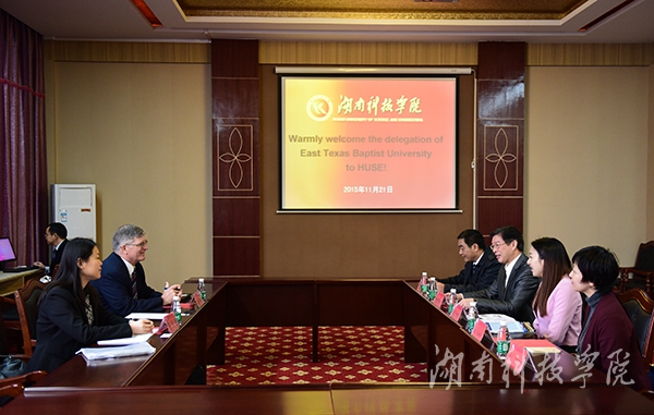 宋宏福对Alan Huesing一行的到来表示热烈欢迎,他详细介绍了学校的历史概况和发展成就,真诚期待两校进一步加强交流与合作,建立长期战略合作关系。ETBU教育中心主任Alan Huesing介绍ETBU的发展情况和教学理念,该校目前建校104年,设有会计、工商管理、医药制药、生物等专业。双方就合作具体事宜进行交流探讨。