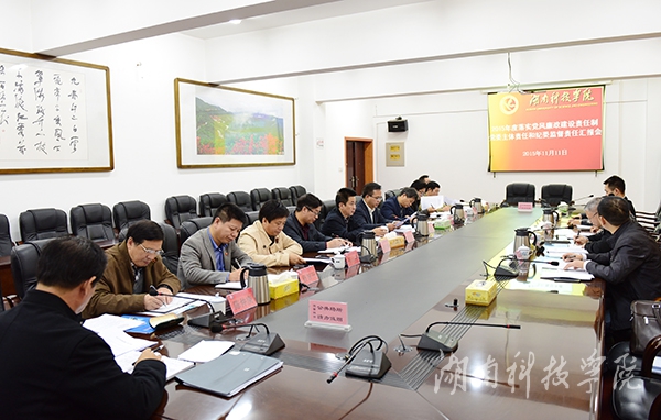在随后召开的党委主体责任和纪委监督责任汇报会上,陈弘代表学校党委作题为《强化主体责任 坚守责任担当 为学校事业发展提供坚强政治保证》的汇报,他从勇担组织领导之责、勇担干部选用之责、勇担宣传教育之责、勇担健全制度之责、勇担纪律建设之责、勇担优化作风之责、勇担责任追究之责七个方面汇报了2015年度我校履行党风廉政建设主体责任情况情况和主要做法。纪委书记彭立威就学校纪委落实党风廉政建设监督责任的主要做法、主要特点和取得的成效及特色工作情况向检查考核组进行了汇报。