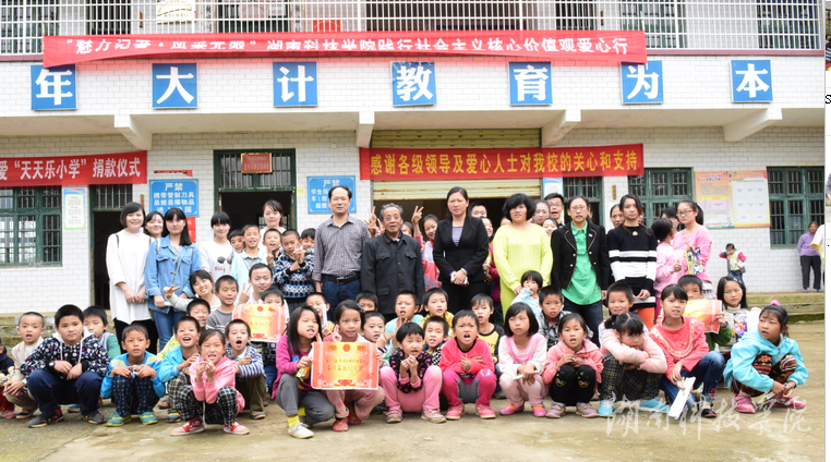 天天乐小学系民办学校,位于羊角塘镇狮城村,地处偏僻的高山中。我校原中文系校友唐千红毕业后接过自己爷爷、创办者唐延禄老人的教鞭扎根于此,默默奉献,一干就是十年。她与校友陈文英、唐鲜花等的感人事迹经媒体报道后引起社会各界人士的广泛关注。