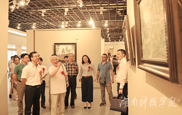 校党委书记陈弘亲临作品展,他说,大学教育文化丰富、气象万千,大学教育的目的在于培养“和谐的人”,在人格养成过程中,美育是根本。“我们学校经常有这样的文化活动,经常有像吴建陵教授这样的老师,在教学上辛勤耕耘,不断创新,‘地因人始终,校因特而名’,他希望学校的美育工作做得更好。