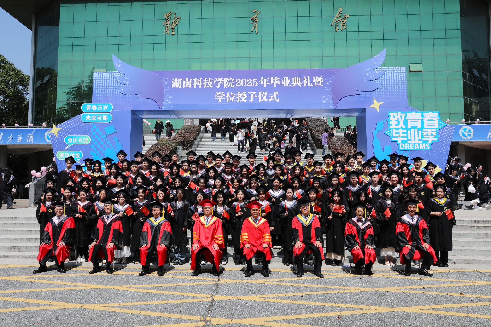 毕业典礼前,全体师生以歌声共鸣青春脉搏,表达对毕业生们最美好的祝福,紧随其后的《遇见・湘科院》原创毕业短片,用光影勾勒了学子们的成长轨迹,既串联起大学四年的珍贵记忆,更表达出他们对未来人生的憧憬与向往。