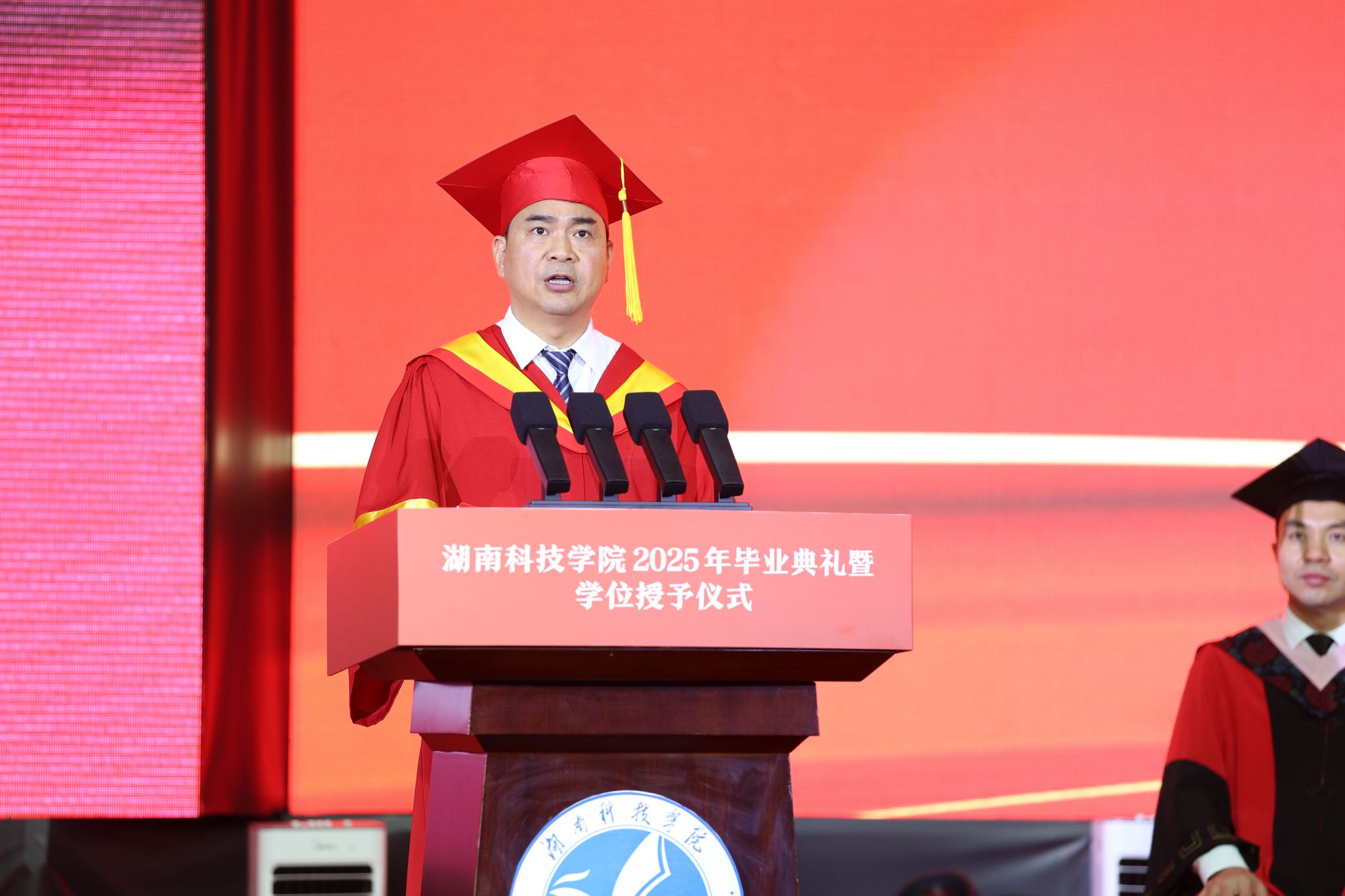 党委委员、副校长李常健宣读《湖南省教育厅关于公布湖南省普通高等学校2025届优秀毕业生和创新创业优秀毕业生名单的通知》。