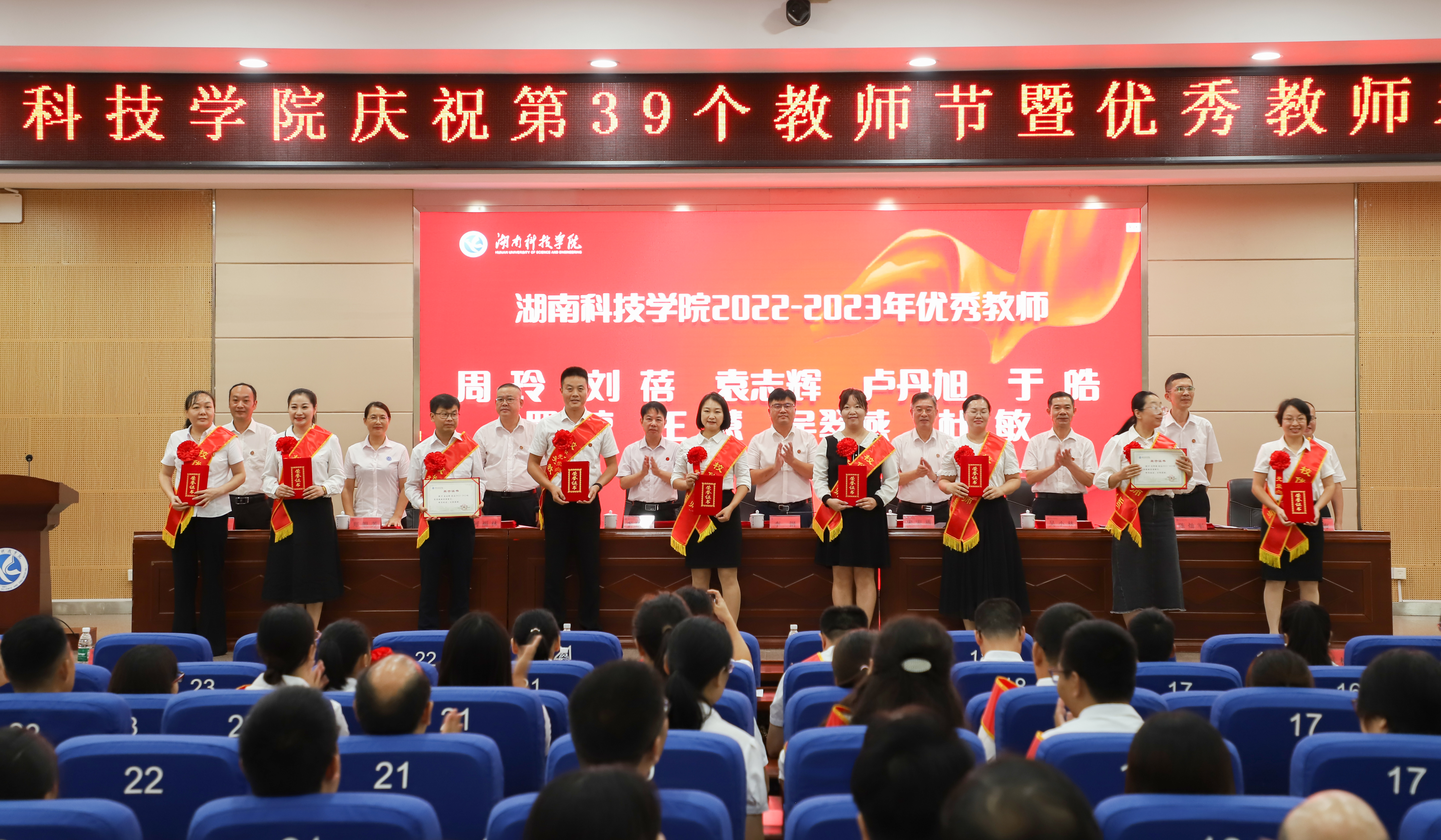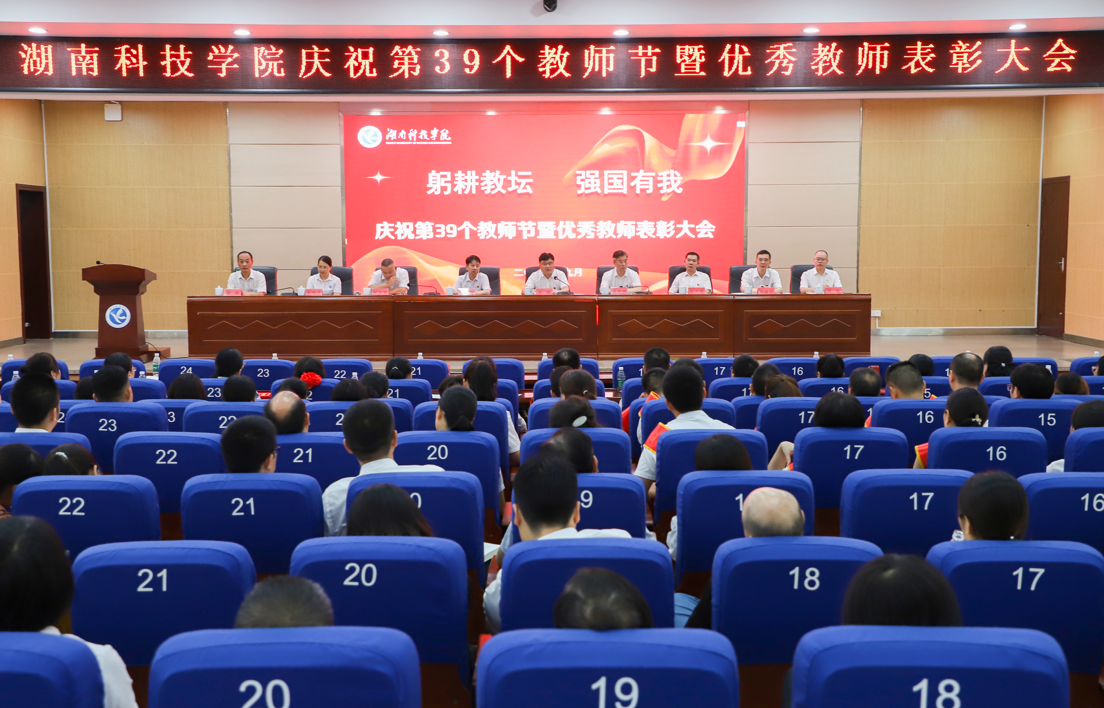 本网讯 (记者 刘琴)9月7日下午,学校在潇湘大讲堂举行庆祝第39个教师节暨优秀教师表彰大会,党委副书记、校长李钢,校领导宋宏福、李常健、吴小林、何福林、陈灿军、郑银芳、何海,党委委员、组织部长杨涛以及表彰对象、新进教师和全体教职员工参加会议。会议由党委副书记宋宏福主持。