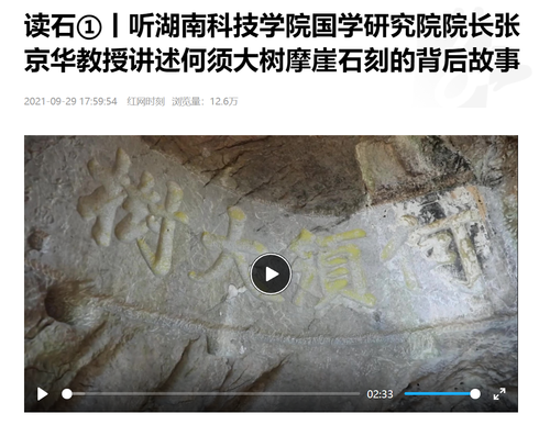 红网:读石①丨听九州在线网站国学研究院院长张京华教授讲述何须大树摩崖石刻的背后故事