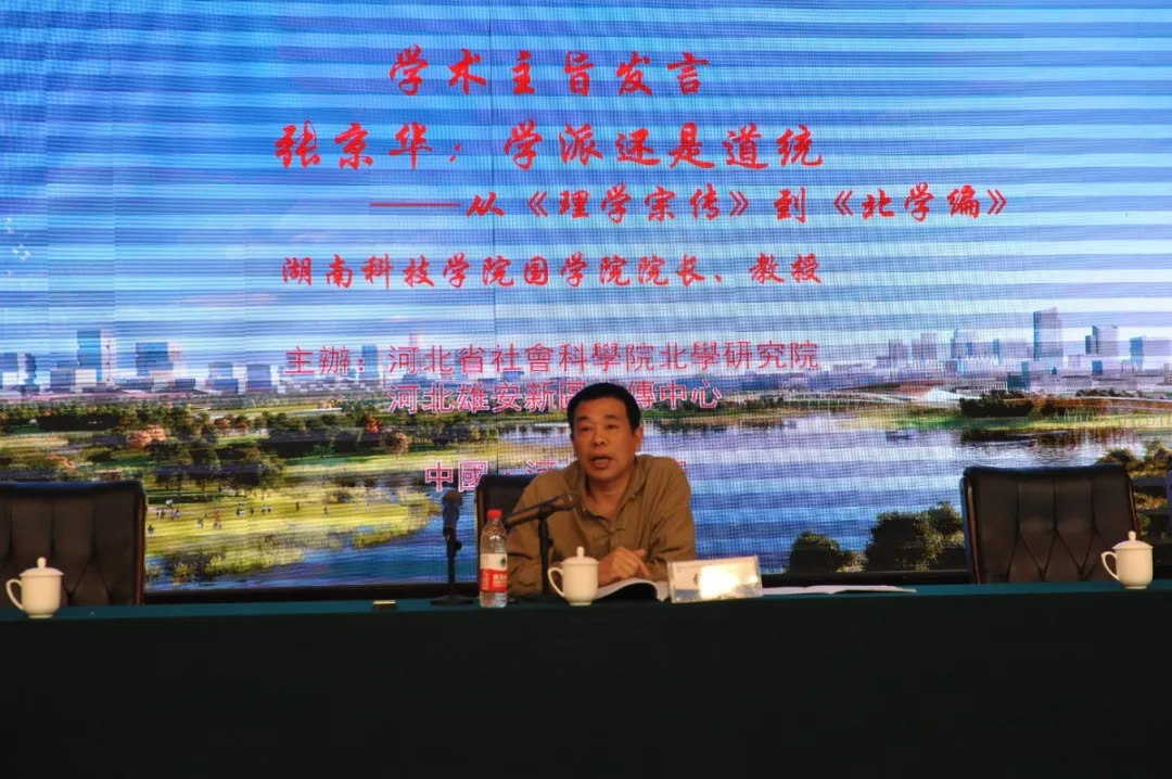 张京华教授向会议提交了题为《学派还是道统——从〈理学宗传〉到〈北编〉》的论文并作发言。会议期间,张京华教授参加了“儒学如何走入和影响时代”的学术对话。此外,张京华教授还接受了超星凯旋影视传媒公司以及容城地方媒体的两次采访。
