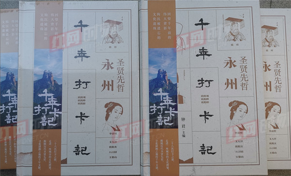 10月,《千年打卡记》一书由全国百佳出版单位——湖南人民出版社正式出版发行。全书共分28个篇章,涉及31位历史人物,共计20万字,300余页。《千年打卡记》全篇记叙了自虞舜时期至明末清初诸多到访过永州的古圣先贤及其在永州的具体事迹,是永州地方历史文化研究的集大成之作,为当代研究永州历史文化发展提供了重要资料和支撑。