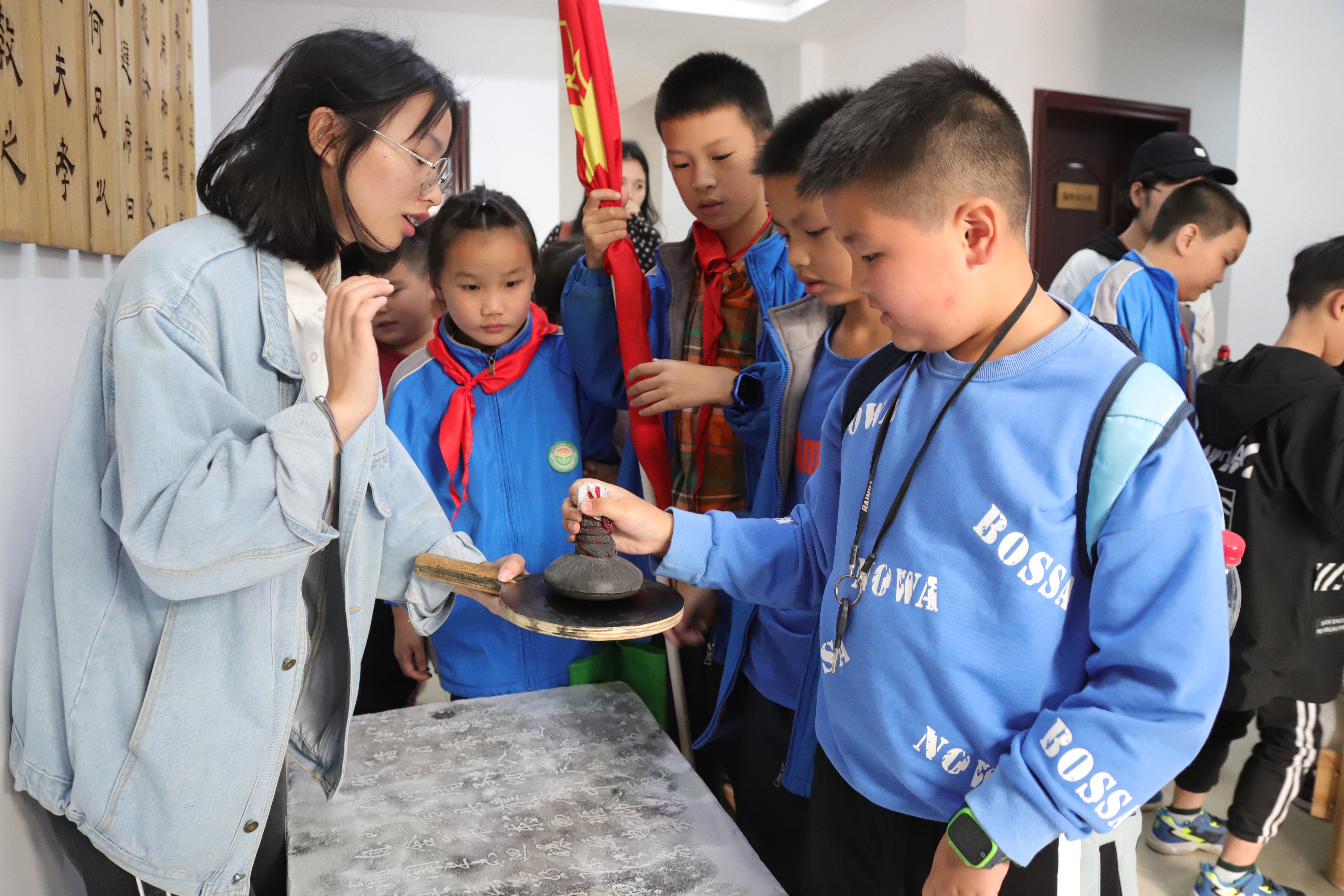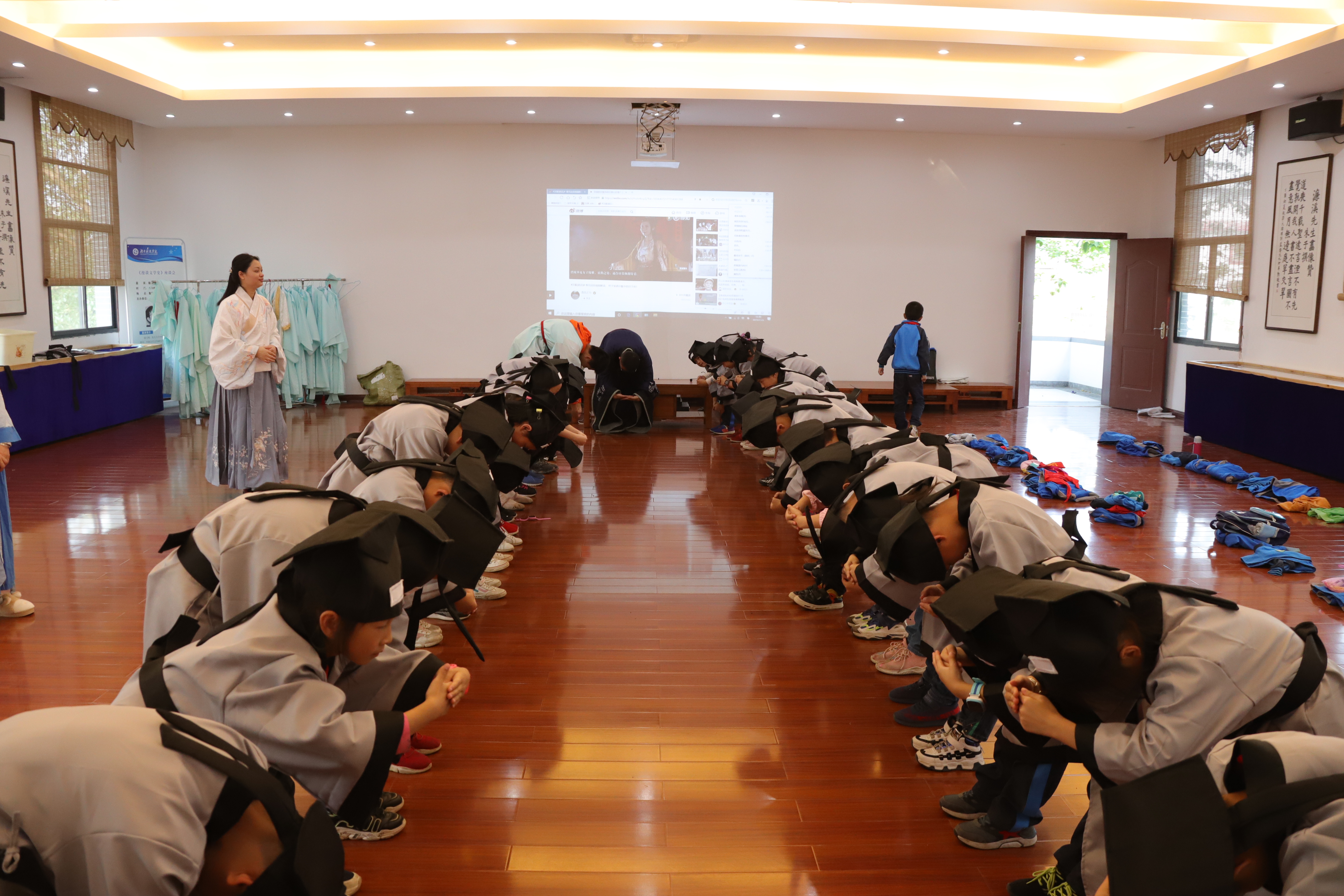 本网讯(记者 文婷婷)“出淤泥而不染,濯清涟而不妖。”11月5日下午,位于九州在线网站国学院旁的“小濂溪”花园传来琅琅读书声,永州市蘋洲小学三年级四个班共180余位师生来到国学院体验国学课堂。本次国学体验分为“汉服礼仪”、“九疑古琴”、“碑刻传拓”、“国学小讲座”四个课堂,分别由夏翠兰、欧阳平彪、敖炼老师和张京华院长带领各自的课程小组主持,国学院17级精英班的16名学生担任助教。