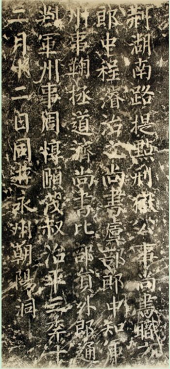 荆湖南路提点刑狱公事、尚书职方郎中程濬治之,尚书虞部郎中、知军州事鞠拯道济,尚书比部员外郎通判军州事周惇颐茂叔,治平三年十二月十二日同游永州朝阳洞。