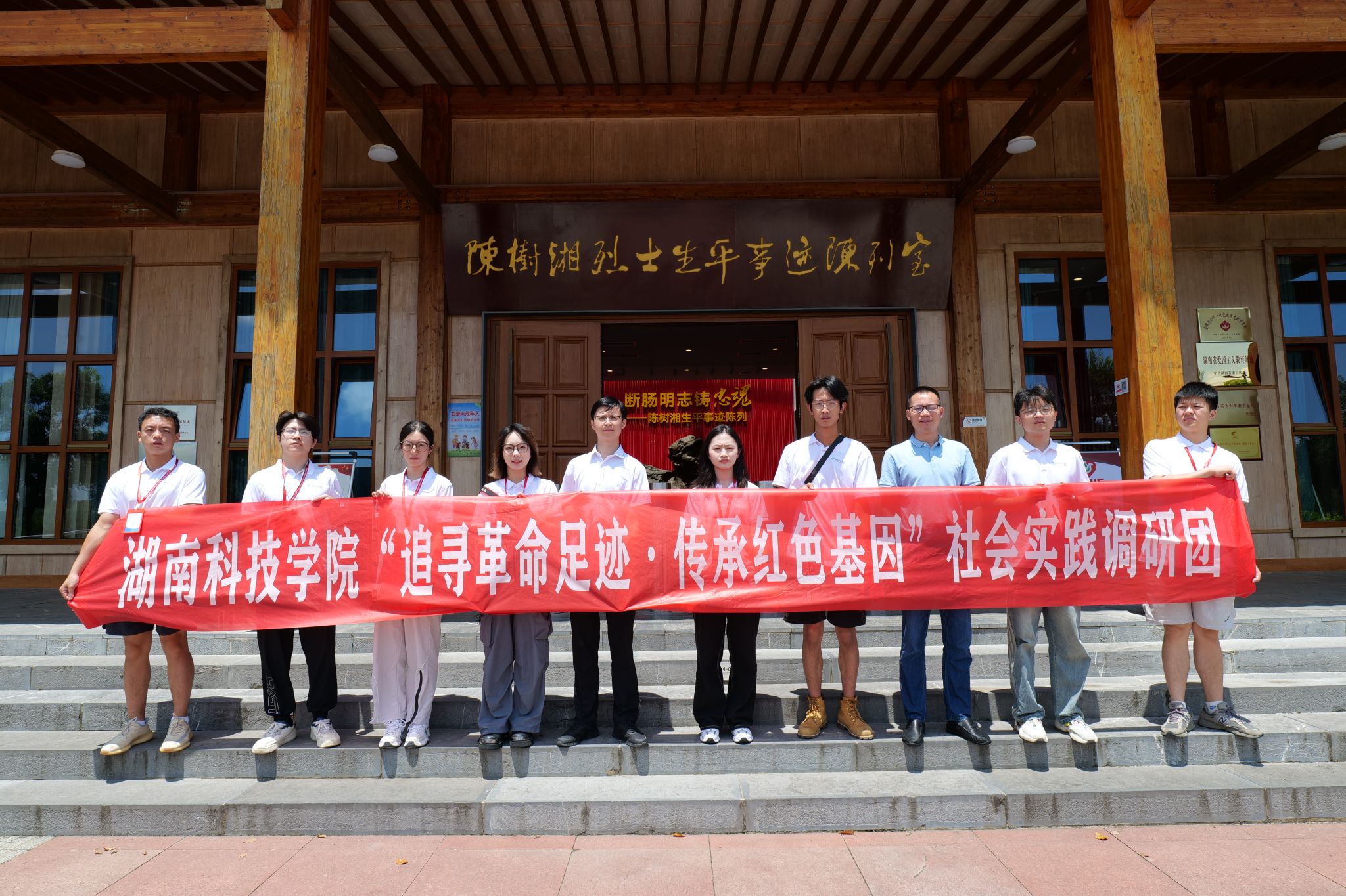 本网讯(通讯员 何宁馨 袁馨)“陈树湘乘敌不备,在担架上忍着剧痛,从伤口处掏出自己的肠子,大喊一声,将肠子用力绞断,壮烈牺牲……”近日,在讲解员的带领下,学校团委组织的“追寻革命足迹·传承红色基因”暑期“三下乡”社会实践团队跟随红军长征足迹,走进陈树湘烈士纪念馆、葫芦岩红军渡等地开展实地调研和田野考察活动,把红色场馆变成爱国主义教育课堂,深挖永州红色资源“富矿”。