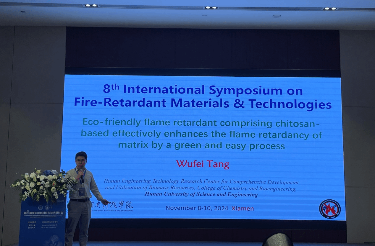 本网讯(通讯员 张自强)近日,第八届国际阻燃材料与技术研讨会(The 8th International Symposium on Flame-Retardant Materials & Technologies)在厦门召开。本次会议由厦门大学和四川大学联合主办,是阻燃界最具影响力的学术会议之一。我校化学与生物工程学院唐武飞博士参加会议并做大会报告。