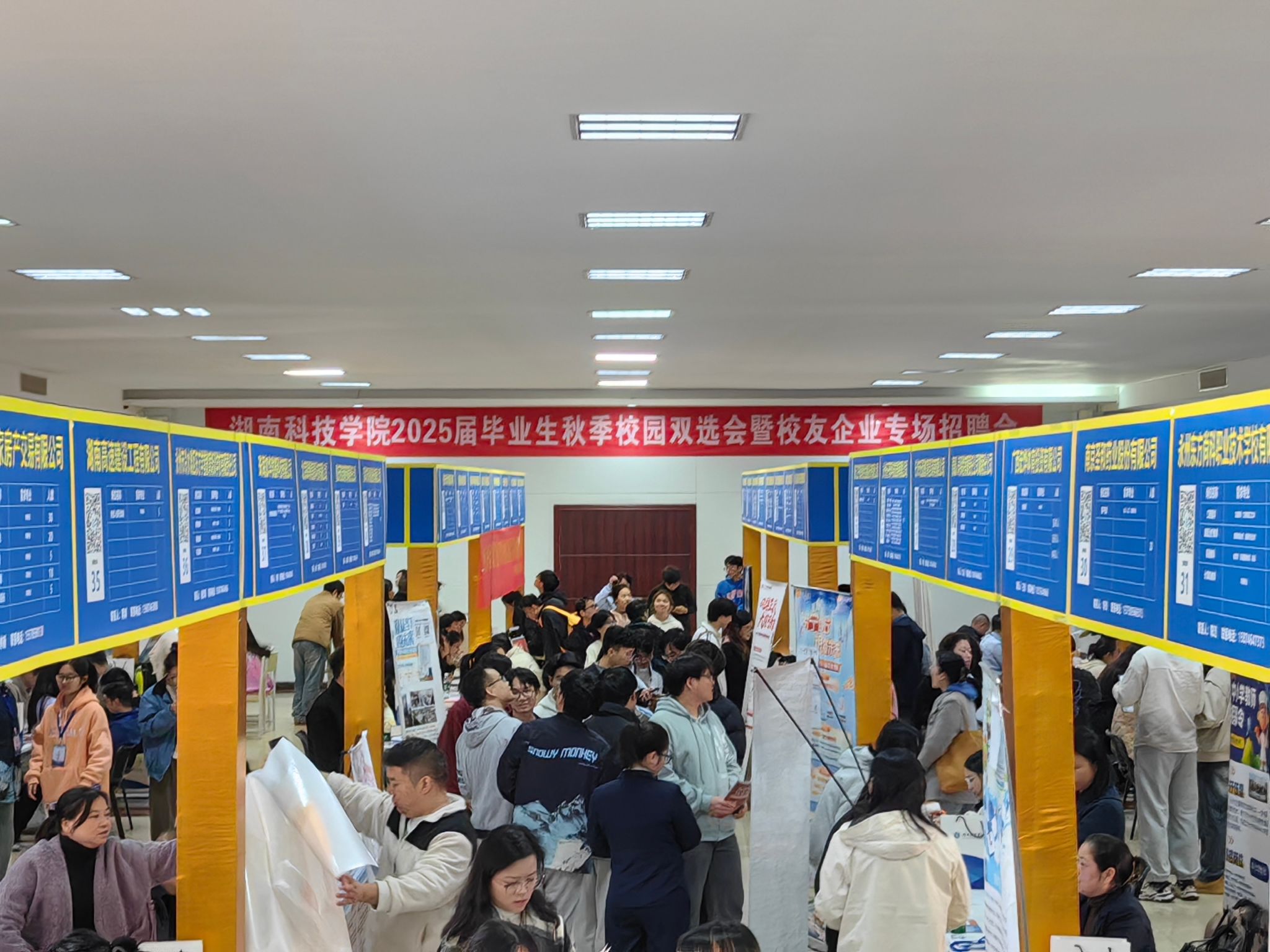 本网讯(通讯员 滕辉 潘加)11月28日下午,我校在潇湘大讲堂二楼隆重举行了2025届毕业生秋季校园双选会暨校友企业专场招聘会。副校长郑银芳出席活动,与用人单位和求职学生亲切交流。各学院党总支书记、毕业班辅导员参加招聘活动。