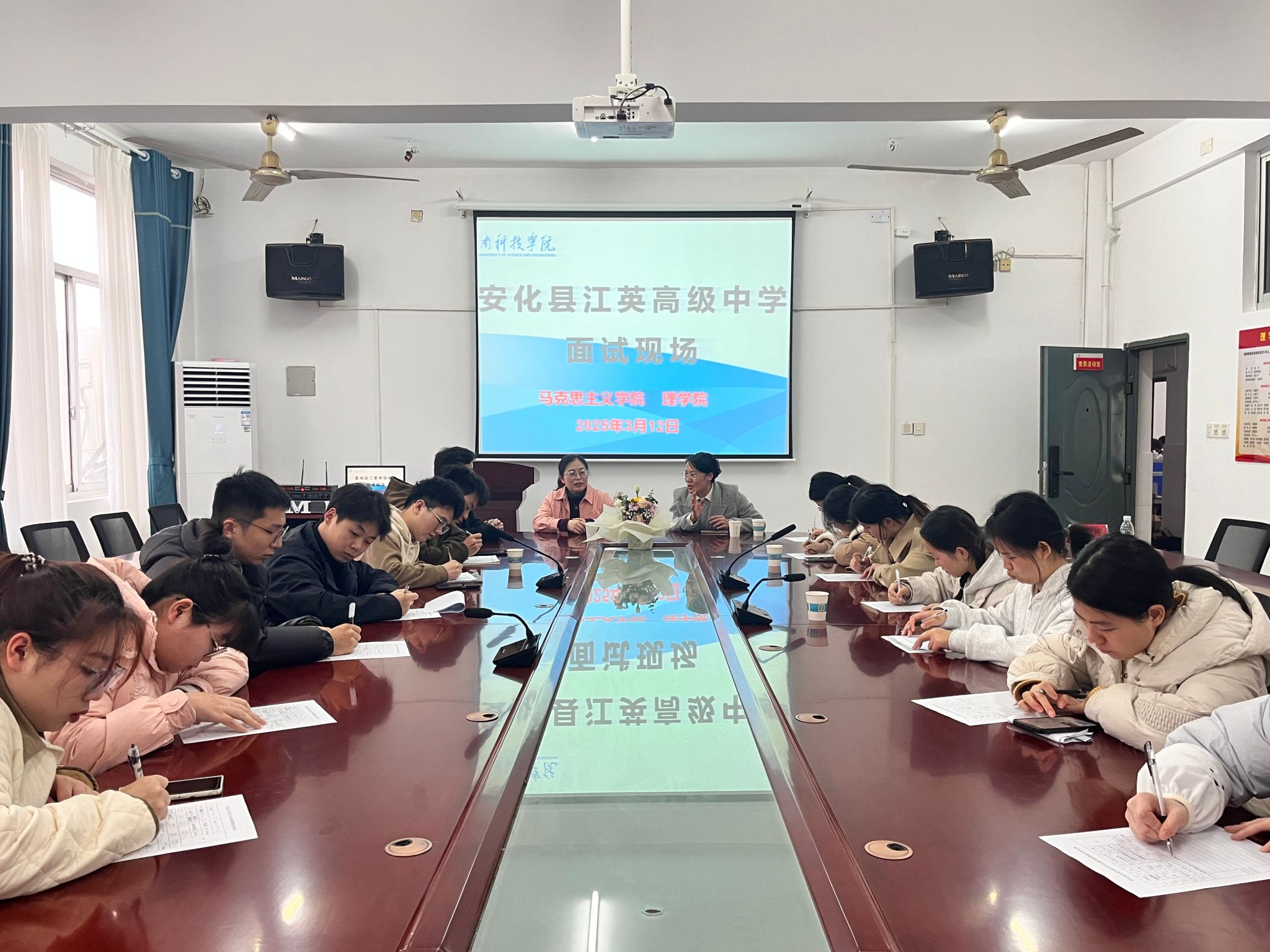 本网讯(通讯员 曹惠如)3月12日下午,马克思主义学院联合理学院在明理楼101召开师范专业专场就业招聘宣讲会,邀请了优秀民办学校安化县江英高级中学(全国关心下一代先进单位、湖南省骨干民办学校、湖南省园林式单位等)到场招聘宣讲。