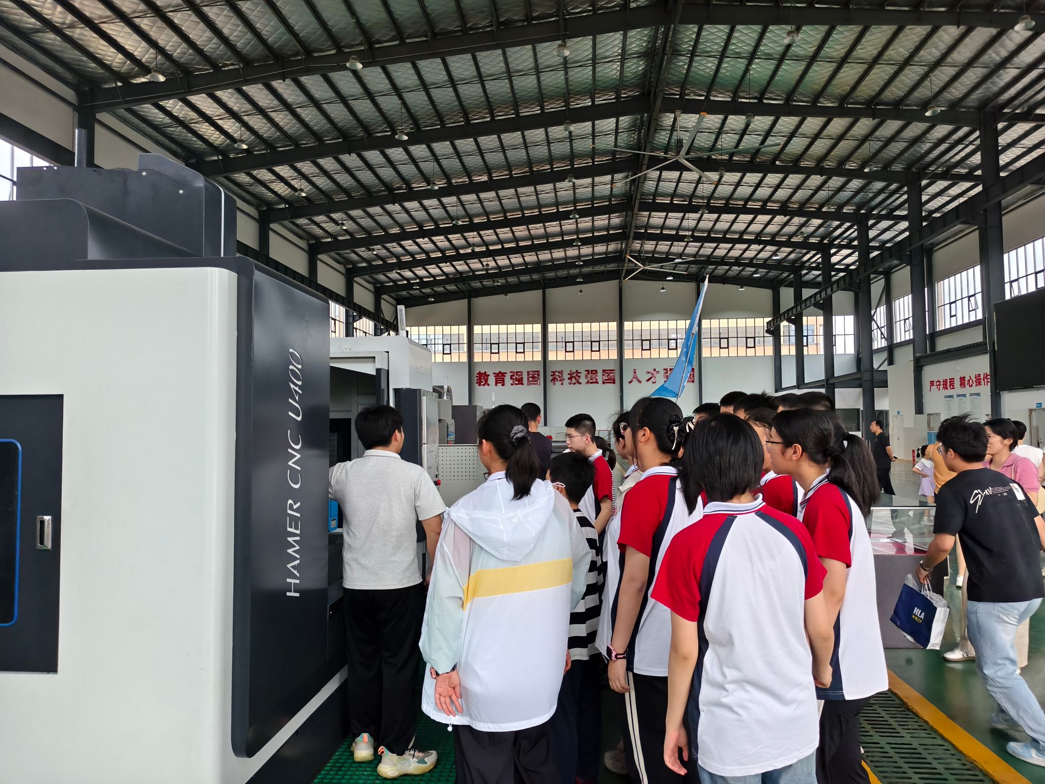 活动中通过科普讲解、实操演示等形式,带领青少年近距离感受科学技术的魅力。在大学生志愿者的带领下,同学们来到学校工程训练中心参观五轴加工中心、数控机床,第一次直观感受现代制造业的强大与神奇,现场3D打印机和激光切割机的操作演示将活动推向了高潮。