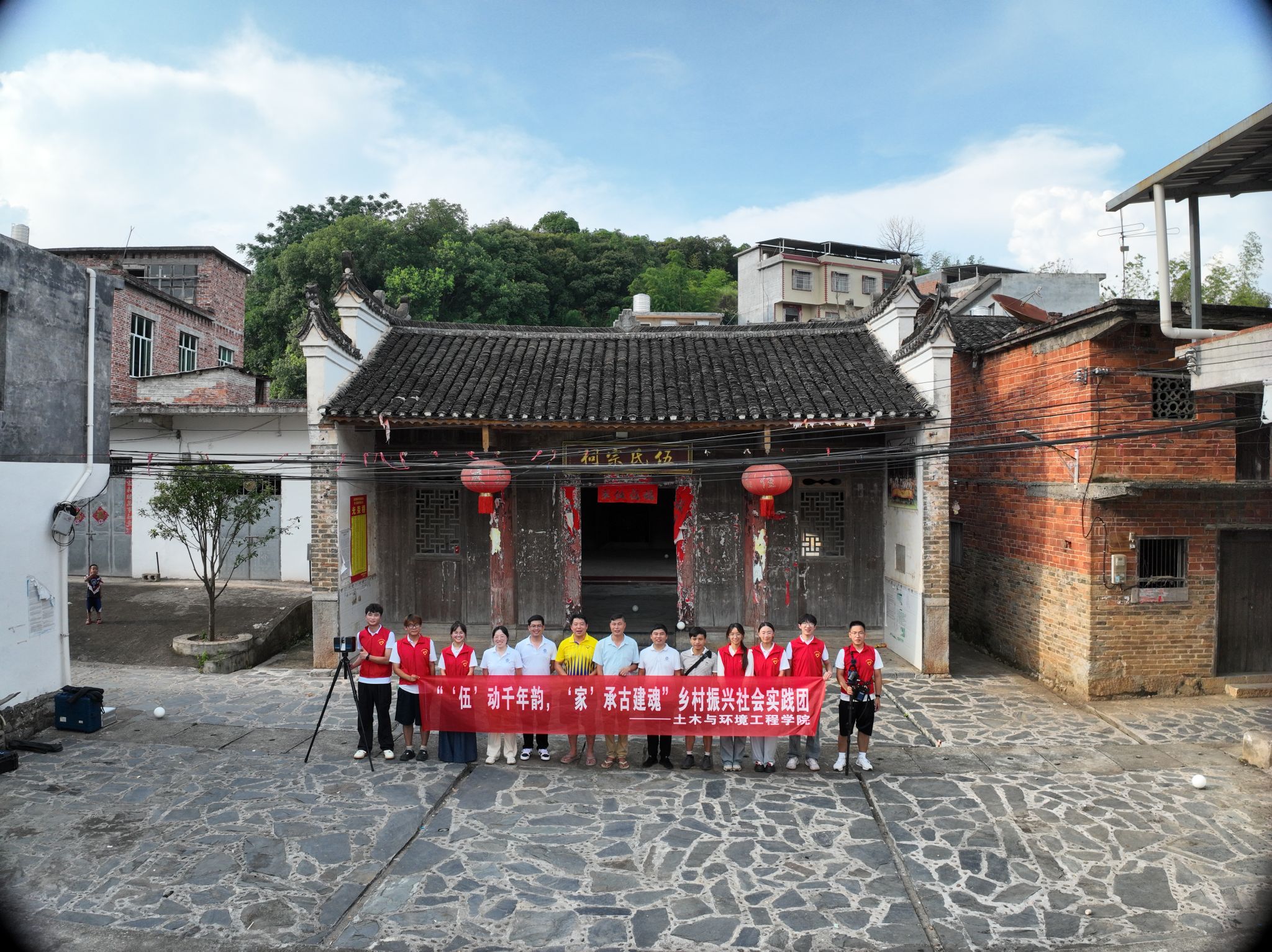 活动还尤其聚焦传统村落保护。在村支两委的协助下,师生们运用专业设备,对村内具有近200年历史的老祠堂及数栋传统民居进行全面测绘,通过三维激光扫描技术和无人机倾斜摄影测量技术,精准记录建筑细节,为后续的数字化保护和修复提供科学依据。通过互动交流,村民们纷纷惊叹科技为古建保护打开的崭新视窗,让大家对家乡的历史文化有了更深刻的认识。