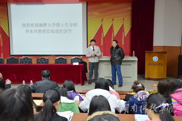 本网讯(记者 涂楚琪 覃雅君)12月15日晚,中国比较文学学会理事、全国马列文论研究会常务理事兼副秘书长、湘潭大学文学与新闻学院原院长季水河教授莅临我校讲学,作题为“美与艺术关系论的历史考察”学术讲座。讲座由校党委委员、工会主席陈仲庚主持,该院院长潘雁飞等参加。