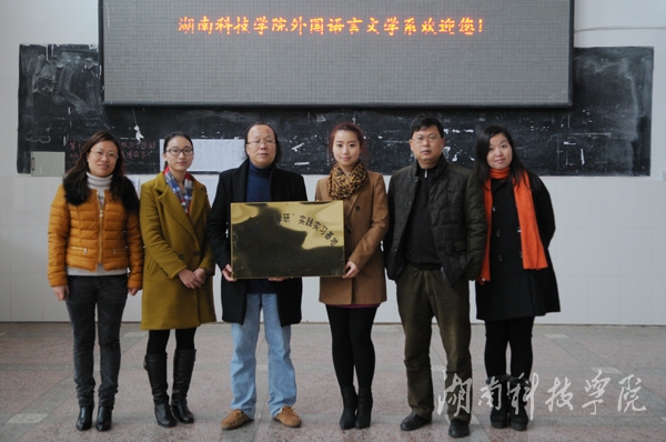 本网讯(通讯员 周玲玲) 2015年1月6日上午,由我校外语系与长沙初有莲胜网络科技有限公司共建的“传神翻译‘产学研’实践实习基地”正式落成,外语系主任潘利锋教授、教务处谢一民副处长、外语系彭宁红副主任、长沙初有莲胜网络科技有限公司区域合作经理霍丽女士、武汉传神信息技术有限公司廖小萍女士等出席了签约挂牌仪式。