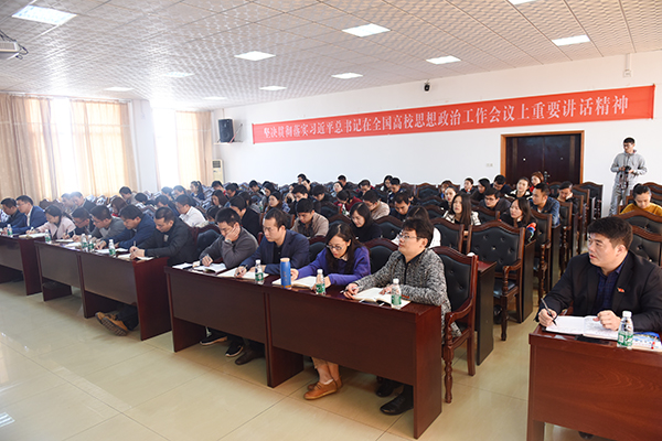 会上,唐华山指出,中国共产党第十九次全国代表大会的胜利召开选举产生了新的中央领导集体,中国特色社会主义进入新时代,习近平新时代中国特色社会主义思想成为我党的指导思想和行动指南,作为从事高校思想政治工作者应该提高政治站位,强化“四个意识”,坚定“四个自信”,自觉用十九大精神和习近平新时代中国特色社会主义思想武装头脑、指导工作。唐华山就学工队伍学习贯彻落实十九大精神提出三点要求。一是改进学风不懈怠,努力成为一个乐于、勤于、善于学习的好老师。要结合实际深入学习十九大精神,在学懂、弄通、做实上下功夫,要在学生中进行宣讲,迅速掀起学习的高潮,让十九大精神和习近平新时代中国特色社会主义思想入心入脑。二是要转变作风求实效。全体学工人员要以强烈的职业认同感和崇高的职业追求,不断提升从事思想政治工作的能力与水平。三是建设队伍促发展。队伍建设是基础、是关键、是保证,要看到新形势下队伍建设方面存在的问题与不足,努力形成相互学习、共同提高、尽展其才的良好局面。