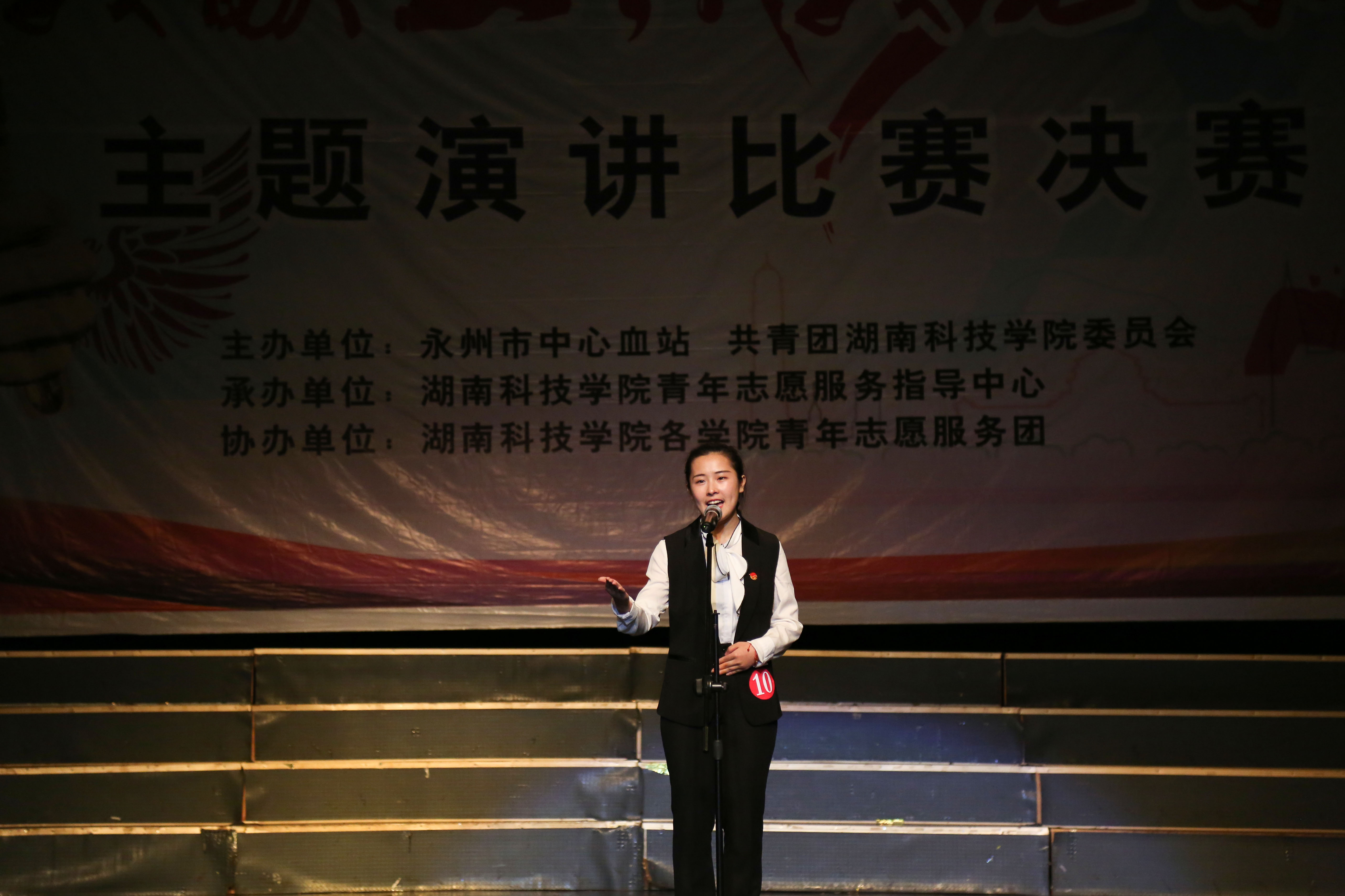 本网讯 4月7日晚,由共青团九州在线网站委员会、永州市中心血站联合主办,学校青年志愿服务指导中心承办的“我献血,我光荣”主题演讲比赛在音乐厅举行。永州市中心血站党支部书记、站长郑淑山,校团委副书记刘佳等应邀出席并担任评委。