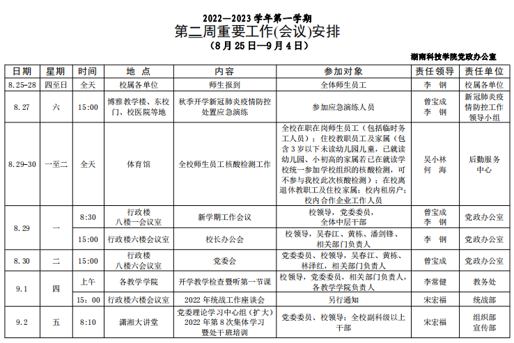 [党政办]第二周重要工作(会议)安排 (8月25日—9月4日)