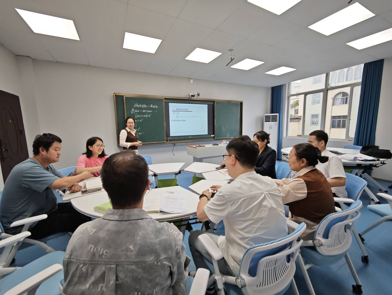绕“如何深挖高等数学课程思政资源”“思政元素与数学知识的融合路径”等议题展开研讨。省教学能手黄燕平老师指出:“课程思政不是简单‘贴标签’,而是要找准学科逻辑与育人逻辑的结合点,做到如盐化水、润物无声。”青年教师朱开心老师分享感悟:“本次示范课让我深刻体会到,数学课堂不仅能培养学生的逻辑思维,更能传递科学探索精神。”