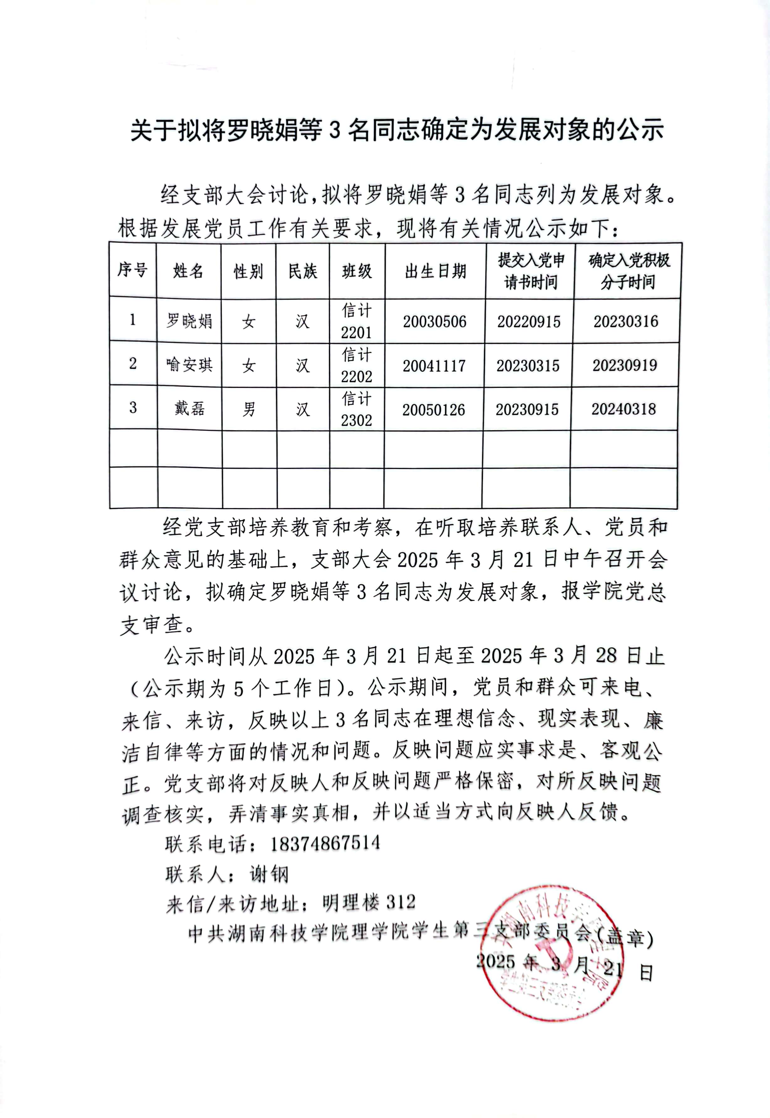 关于拟将曾慧等15名同志确定为发展对象的公示