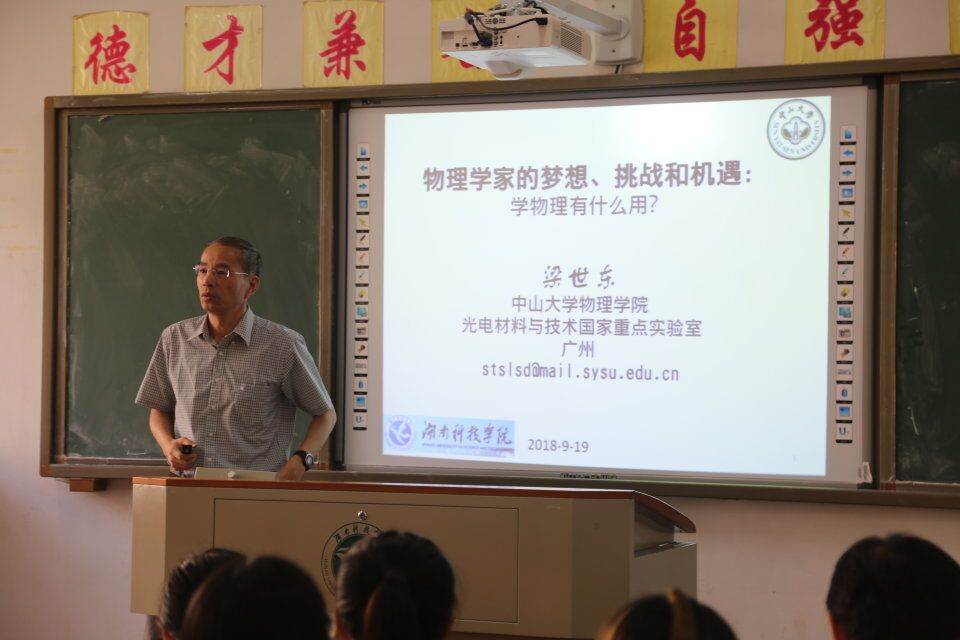 本网讯(通讯员 谢娟 张和)9月19日下午,中山大学物理学院博士生导师、香港大学博士后梁世东教授受邀到我校理学院开展以“物理学家的梦想、挑战与机遇”为主题的学术讲座。该院院长唐耀平、党总支书记陈旭日、物理学专业教师团队及部分物理学专业学生参加了讲座。