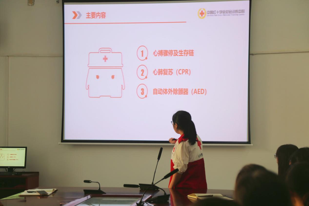 本次培训主要涵盖了心肺复苏和海姆立克应急救护技能两个方面。培训会上针对学生与老师在生活中可能遇到的突发状况,主讲人对“心肺复苏”、“海姆立克急救法”的步骤以及操作进行了详细的介绍,其中包括黄金两分钟抢救自动体外除颤器(AED)等救护知识。主讲人详细介绍了海姆立克急救法,并且邀请学生一起进行演示。培训的最后,为将理论知识转变成为实践,培训师资带领师生们开展急救演习,并对“口腔异物处理”、按压位置等急救步骤进行指导。活动氛围融洽,师生们积极提问交流,参与并体验心肺复苏的各项基本操作步骤。