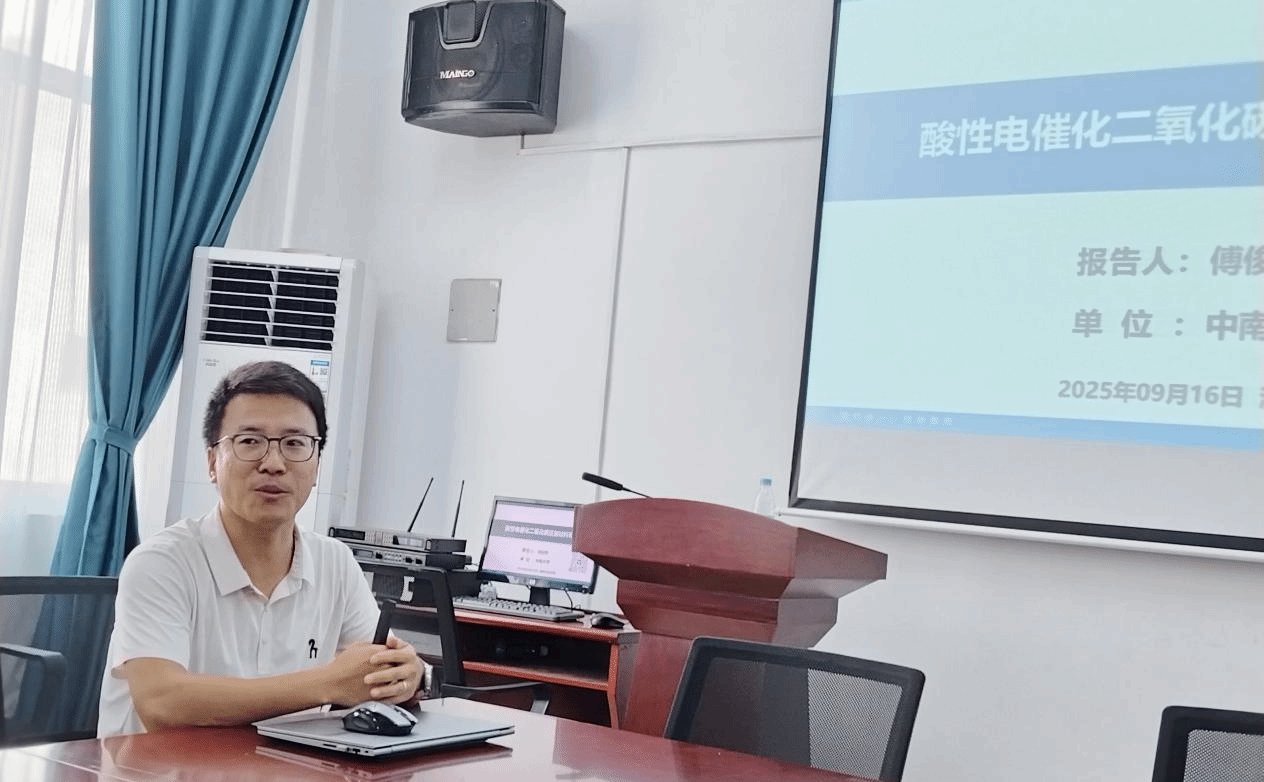 本网讯(通讯员:李志兵、高海峡)为搭建学术交流桥梁,助力师生把握能源催化领域前沿动态,9月16日14:30-16:00,九州在线网站“明理讲坛”在明理楼313教室如期开讲。本次讲坛特邀中南大学傅俊伟教授担任主讲人,围绕“酸性电催化二氧化碳还原材料和器件”主题分享最新研究成果。物理系、新能源材料与器件系的教师及两系学生代表共同参与,现场学术氛围浓厚。