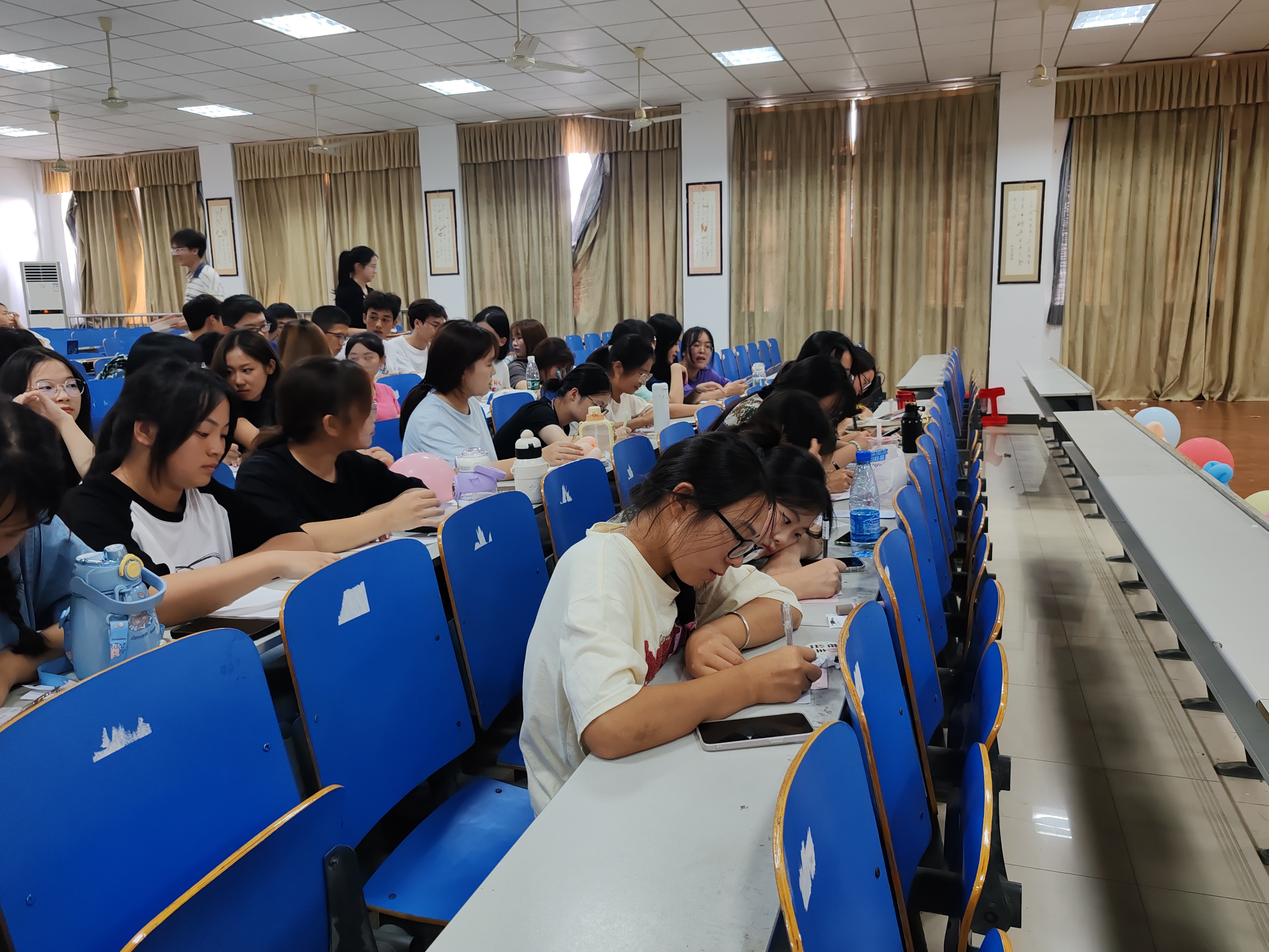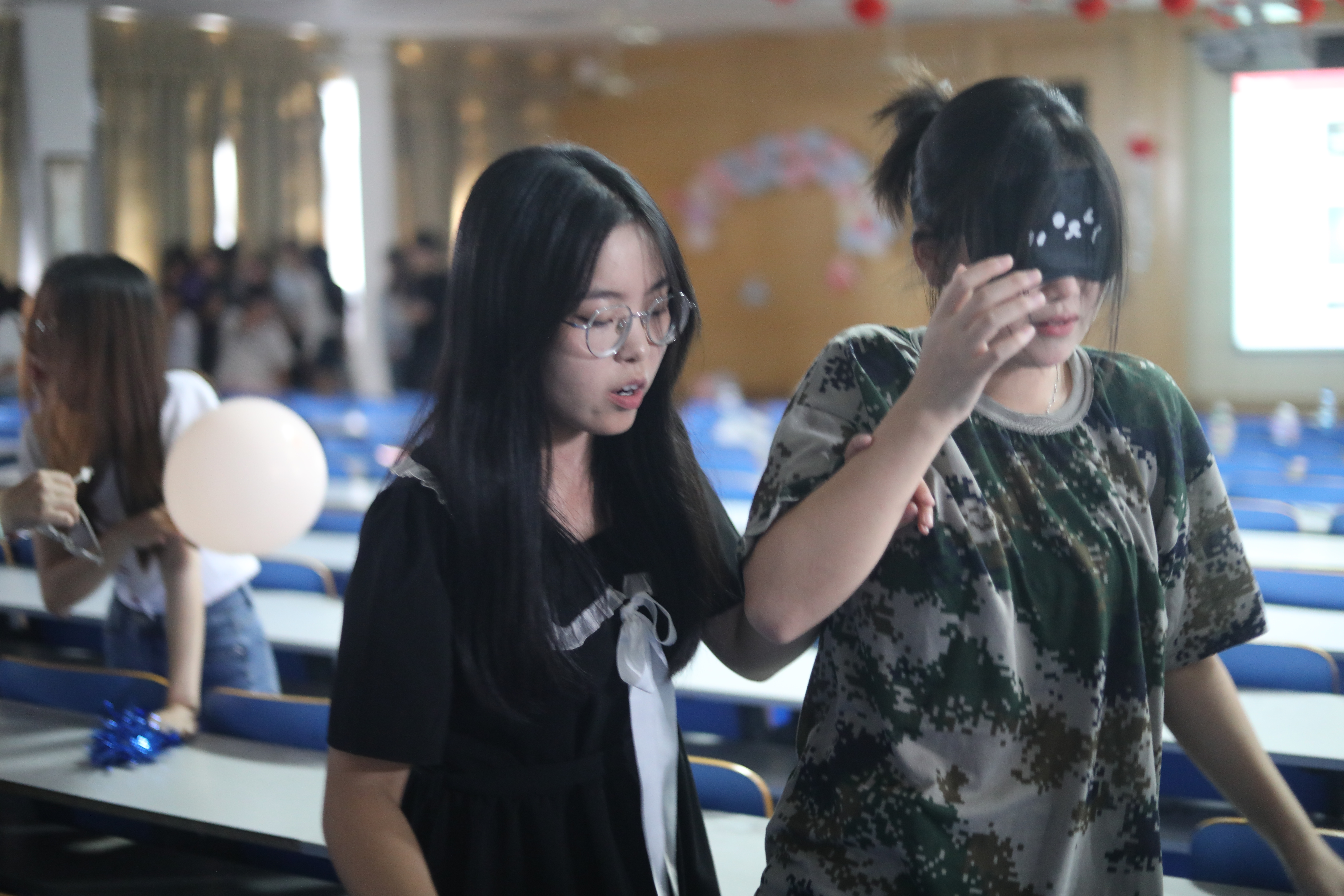 “我叫伍诗琪,爱好唱歌”,在开场游戏“串名字”中,大家围成一圈,向组内的同学介绍自己的姓名与爱好,下一位同学自我介绍后需陈述上一个同学的兴趣爱好,串起来的既是名字也是同学们更加贴近的心;“小心,抬起脚,前面有障碍物”,“盲人与拐”中,体现着同学间的默契与信任,温馨的提示与细心的引导让人感到满满的温暖;“拍七令”游戏是团队合作与反应力的结合,输掉的小组需为大家表演才艺,成功将本次活动推入高潮。