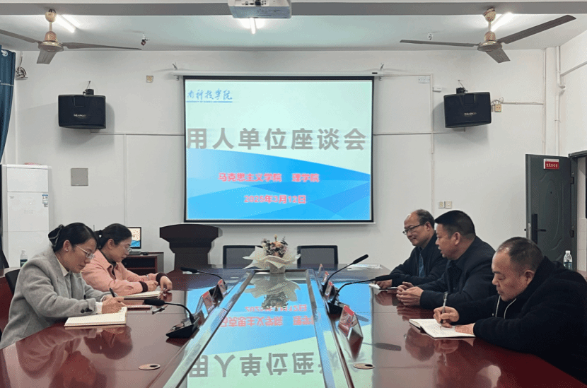 本网讯(记者 曹惠如)3月12日晚,马克思主义学院、理学院与安化县江英高级中学在明理楼313会议室召开了用人单位座谈会,马克思主义学院党总支书记陈玉皎、理学院党总支书记刘华、安化县江英高级中学董事长谢仁和、副校长黄共和、督学周建民出席会议。
