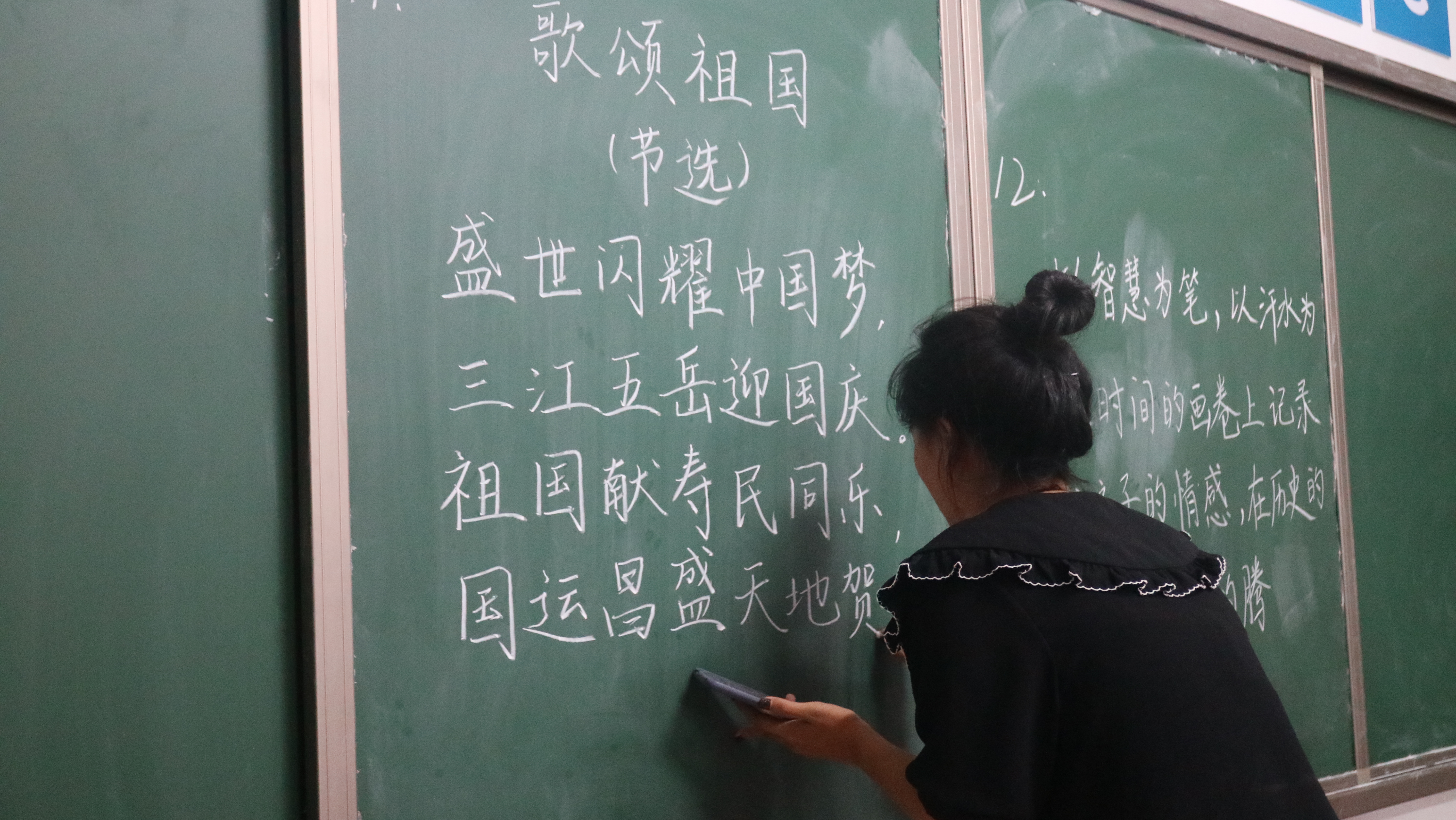 “汉字是中华民族智慧的结晶,是传承中华民族优秀文化,培养爱国情怀的重要途径,今年是建国70周年,本次粉笔字比赛的举办对培养当代大学生的民族意识和家国情怀有重要意义;同时,借此平台也抒发了我对祖国的热爱、祝福之情。”参赛选手张洁说道。