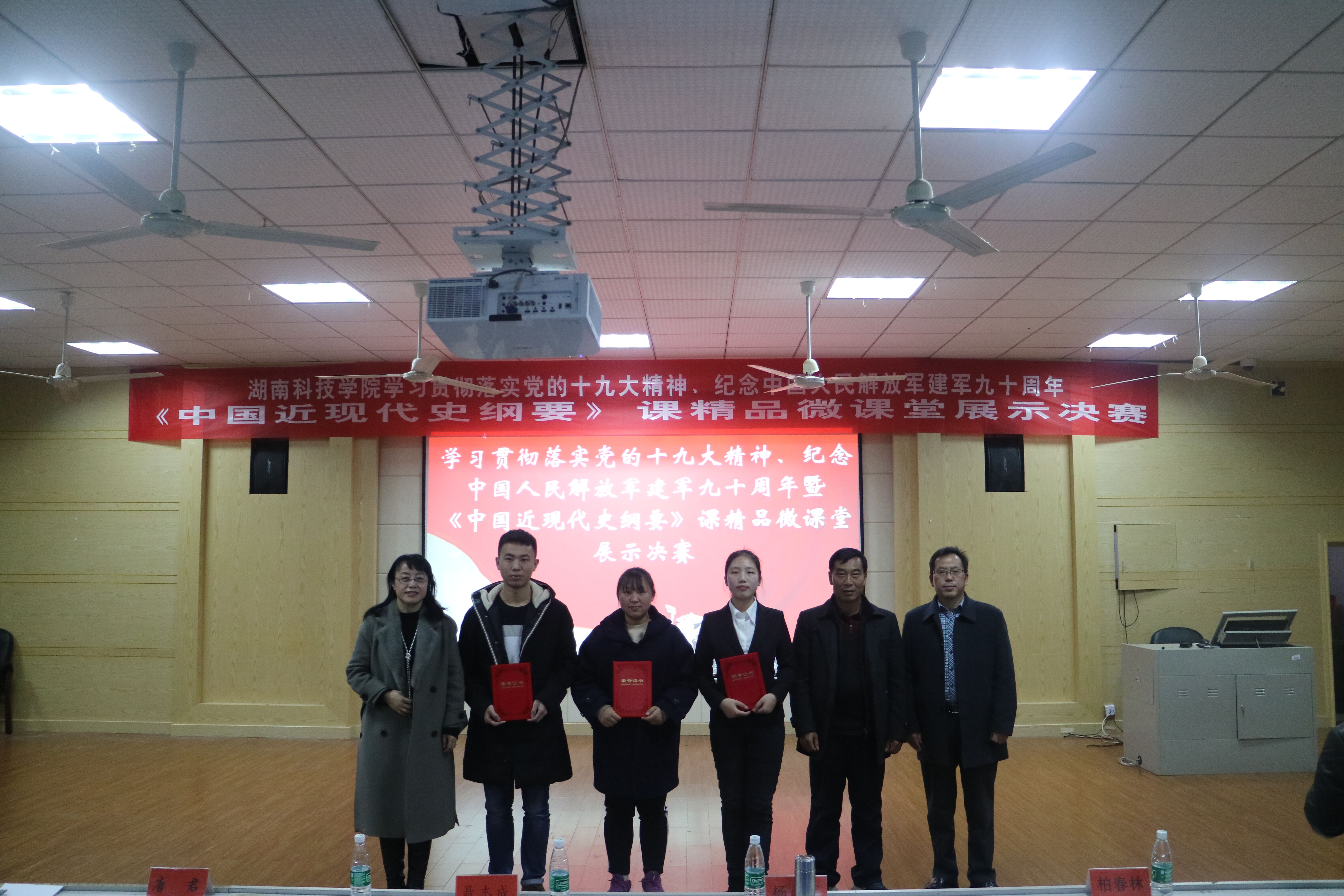 本网讯 (通讯员杨雯 康乃欣) 为进一步深入学习贯彻落实党的十九大精神,纪念中国人民解放军建军90周年,12月12日晚,马克思主义学院在致远楼701举行《中国近现代史纲要》课精品微课堂展示决赛,来自全校各个学院的同学们化身“小老师”,以别开生面的思政微课的形式生动的讲述了难忘的历史片段、历史人物。
