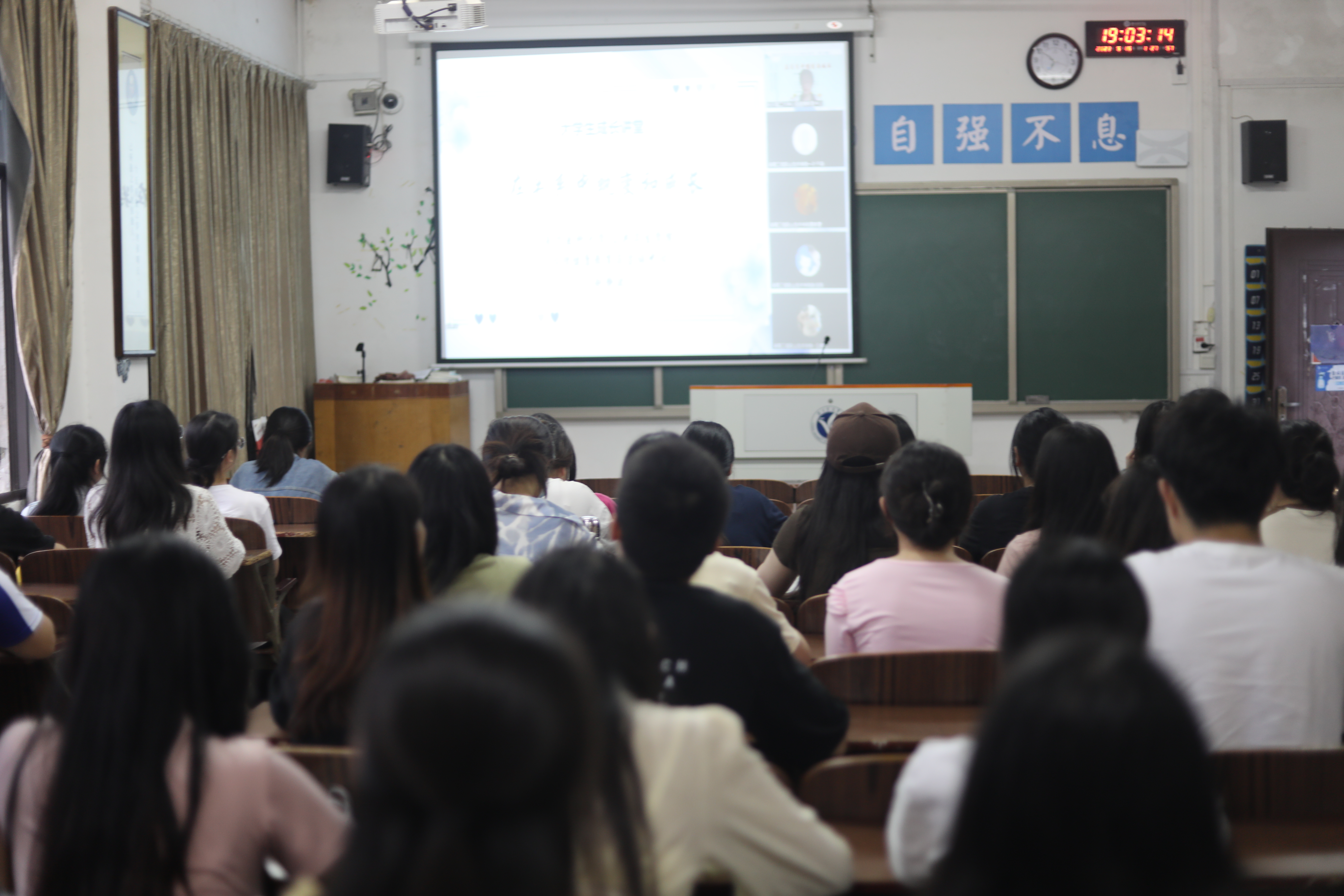 本网讯(记者 李悦、唐汇)为落实省心理工作要求,进一步推进心理健康教育宣传工作,提升学生心理健康水平。5月15日晚,我院组织学生于鹤鸣楼501教室观看湖南省高校大学生第五期成长大课堂讲座直播,本次讲座由南方医科大学赵静波教授主讲。