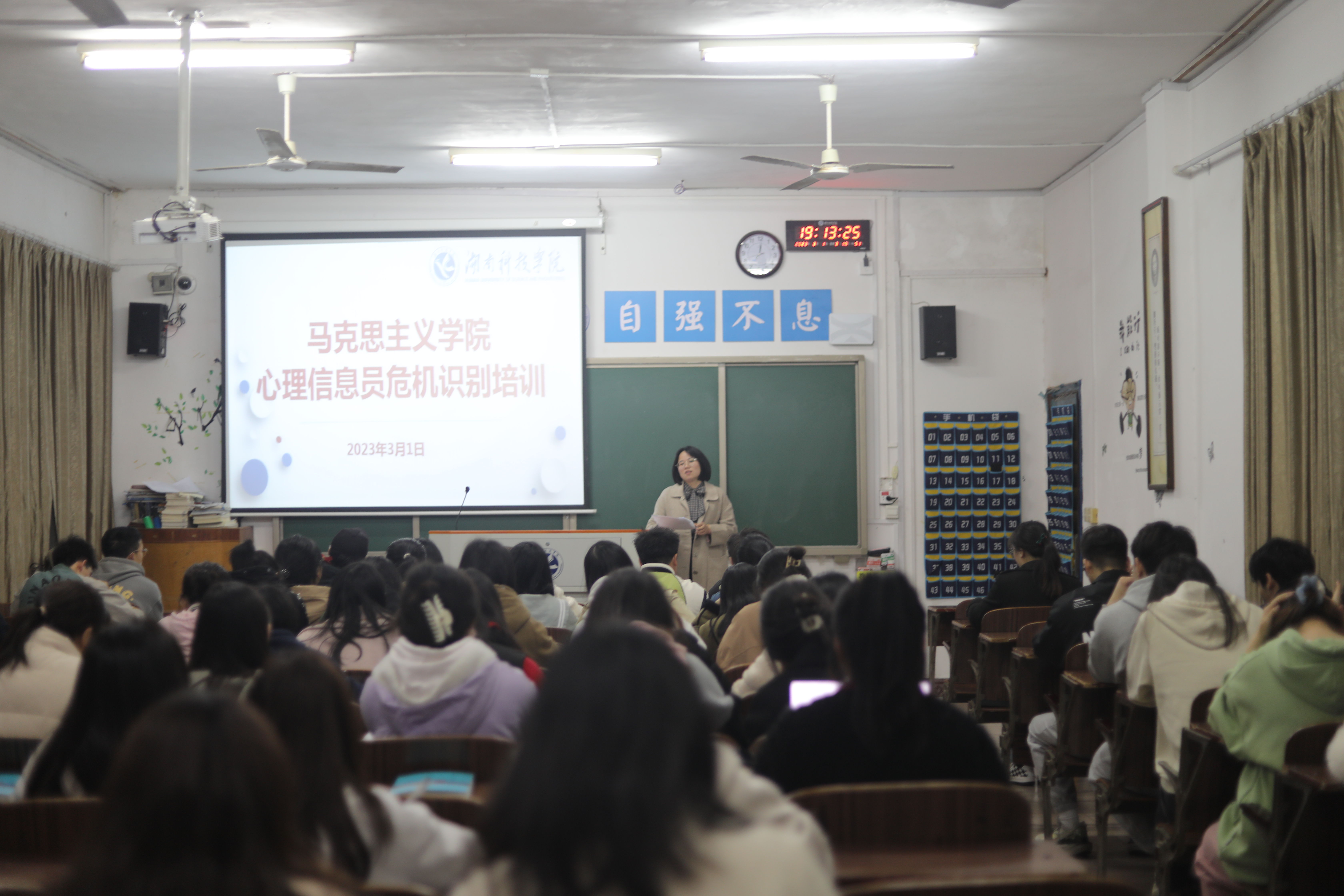 会上,曹惠如老师从心理危机的四种类别对心理危机的概念进行了详细的解析,着重强调了对于心理危机信息的识别,同时指出应对心理危机的具体措施。她鼓励各班心理信息员要善于对班上同学的行为进行观察,并运用正确的方法疏导同学们的心理。