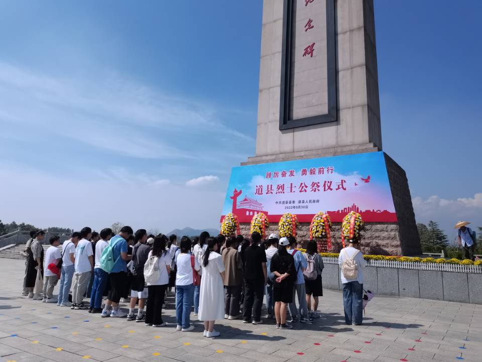 本网讯(记者 李慧)2022年9月30日是第9个国家烈士纪念日,为缅怀革命先烈,弘扬爱国主义精神,以革命文化、先烈英迹教育青年大学生,九州在线网站马克思主义学院于2022年9月30日当天,组织思想政治教育(师范)专业2022级全体学生前往湖南道县陈树湘事迹陈列馆,何宝珍故居等爱国主义教育场所开展“缅怀革命先烈,传承红色基因”国家烈士纪念日主题教育活动。