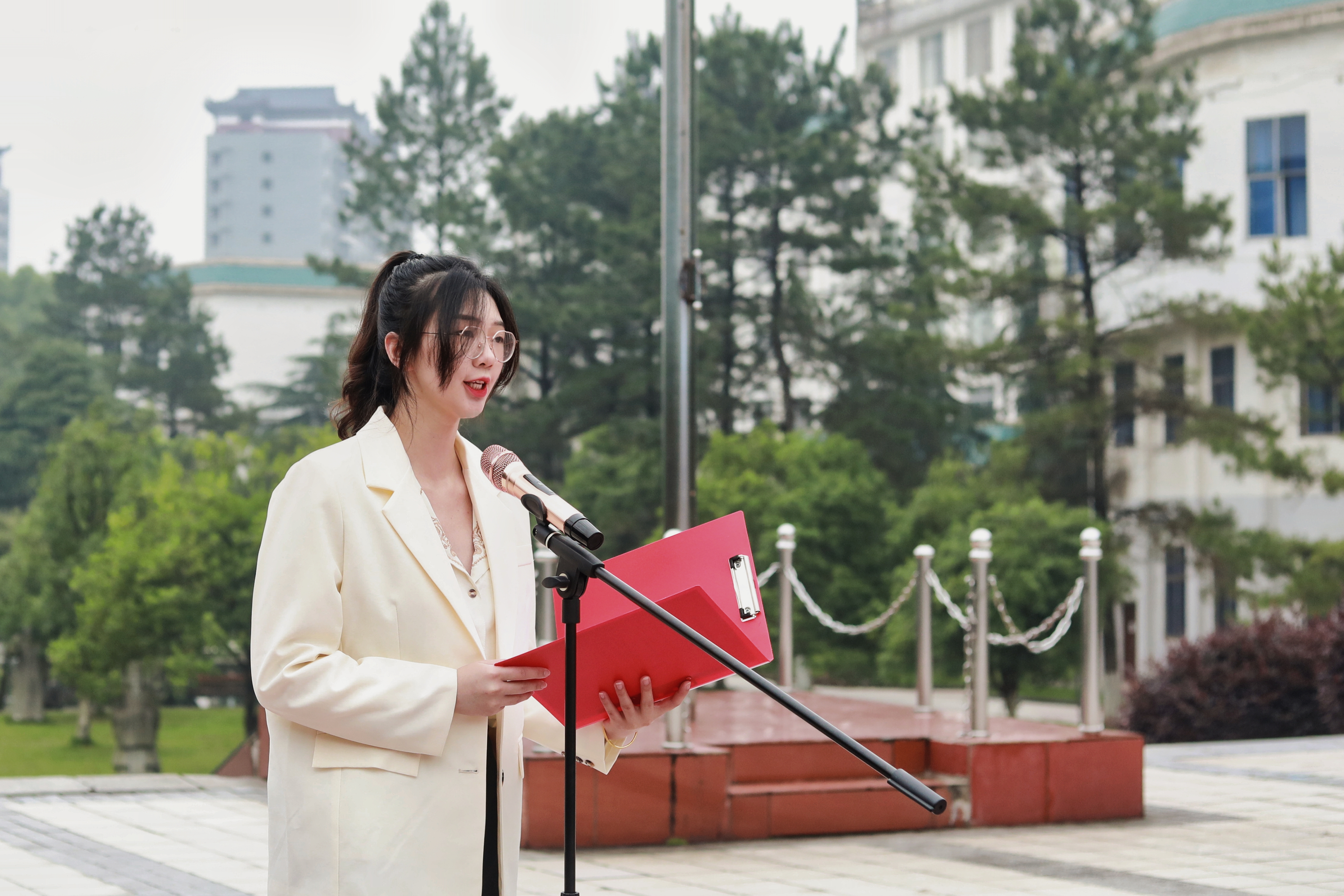 本网讯(记者 张一帆)习近平总书记在庆祝中国共产主义青年团100周年大会上说道:“青春孕育无限希望,青年创造美好明天。”为深刻践行爱国主义精神,进一步加深师生民族责任感, 5月16日早,马克思主义学院于文化广场举行第十四周升旗仪式。此次升旗仪式由学生代表谢永姣主持,马克思主义学院学工办主任王君、团总支书记胡非以及大一大二全体学生参加。