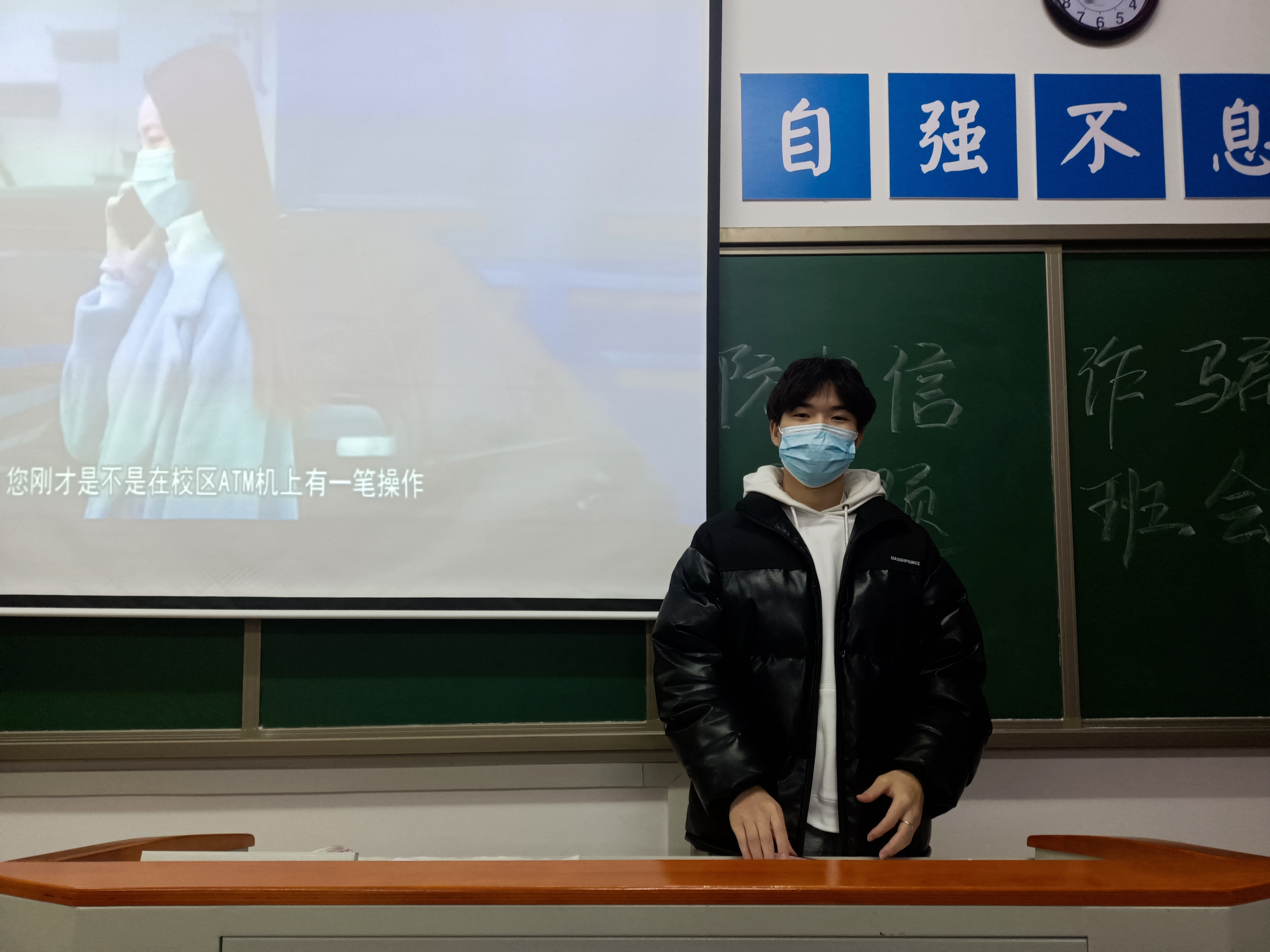 活动伊始,各班班长提醒同学们要警惕QQ、微信冒充好友和盗号等诈骗手段,并严令禁止兼职刷单等诈骗行为。随后,组织同学们观看宣传防电信诈骗相关知识的主题视频,向同学们科普隐藏在身边的骗术新型手段和反电信诈骗知识。