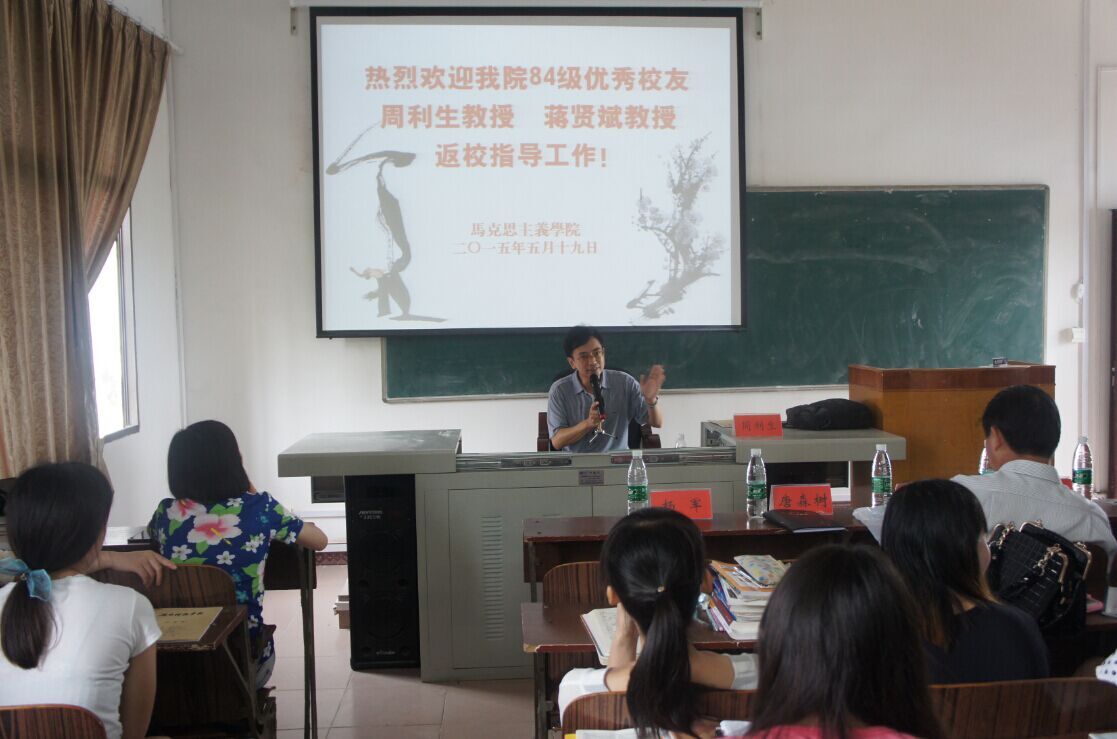 本网讯(通讯员 曹金莎)5月19日上午,马克思主义学院邀请84级优秀校友周利生教授来校讲学。周利生以“坚定理想信念、做优秀大学生”为题给全院学生上了一堂生动的思想教育课。