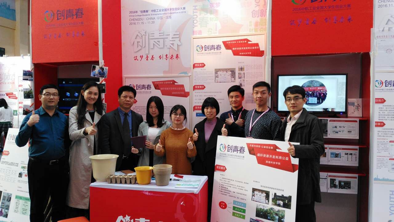 11月19日,陈海峰团队创作的“烟秆资源开发利用公益项目”在2016年“创青春”全国大学生创业大赛决赛上载誉归来,斩获银奖,实现学校这一赛事国家级银奖零的突破,创我校建校以来最好成绩。